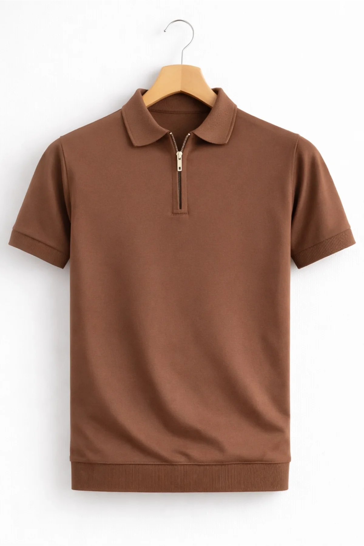 Erkek Polo Yaka Düz Triko Tişört Kahverengi Cd173