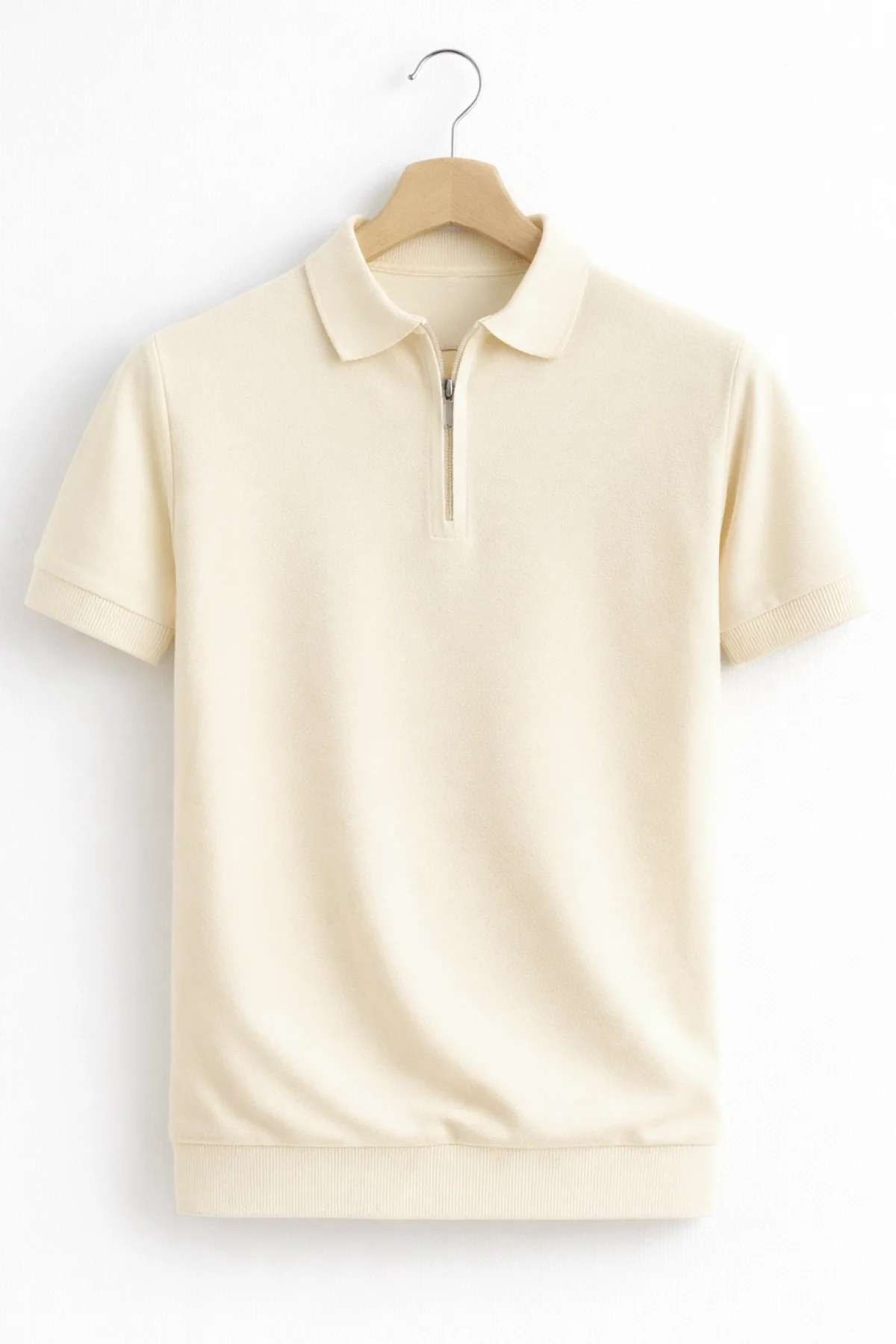 Erkek Yarım Fermuarlı Polo Yaka Normal Kalıp Kazak Krem Cd101