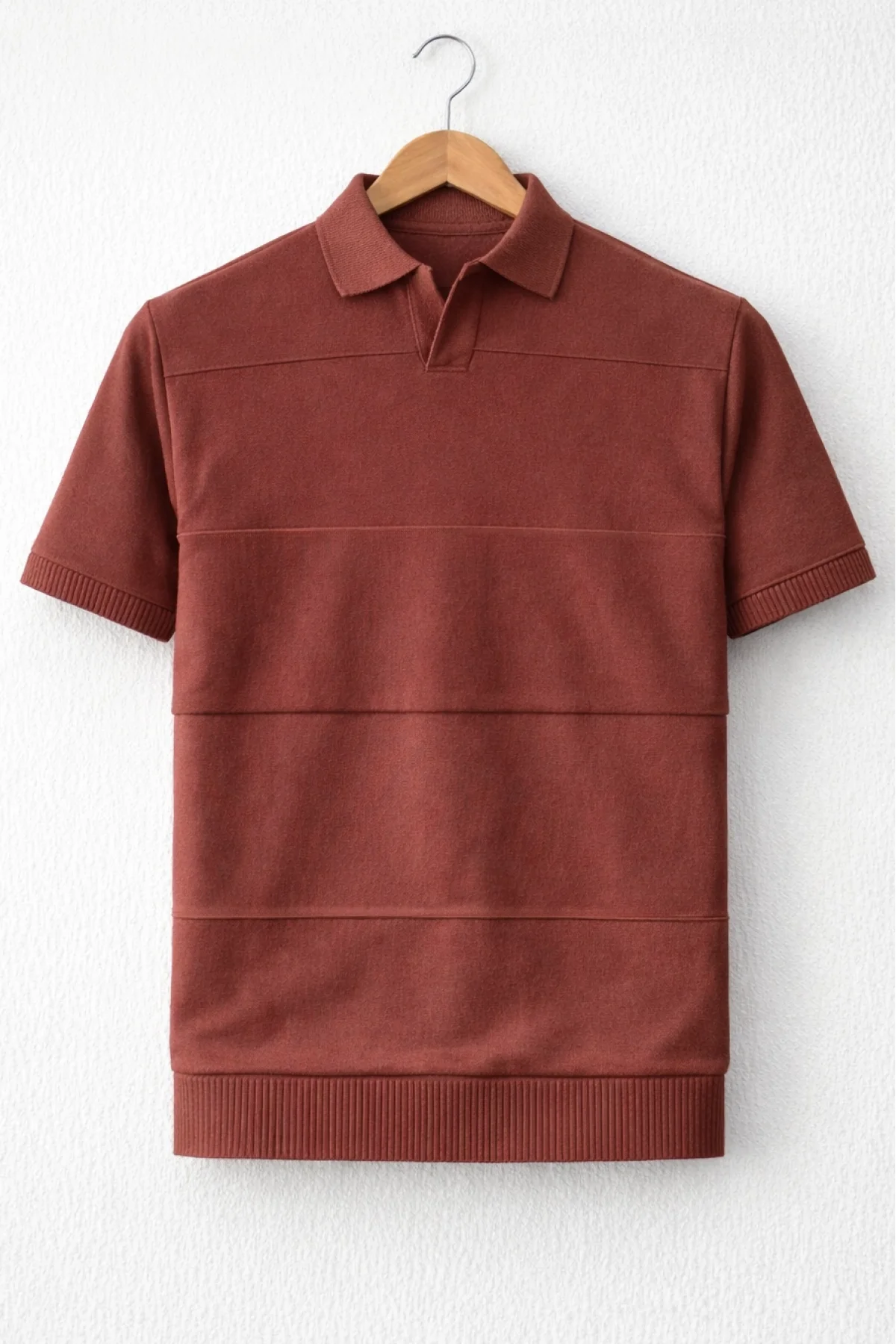 Erkek Açık Yaka Bloklu Triko Tişört Kiremit Cd174