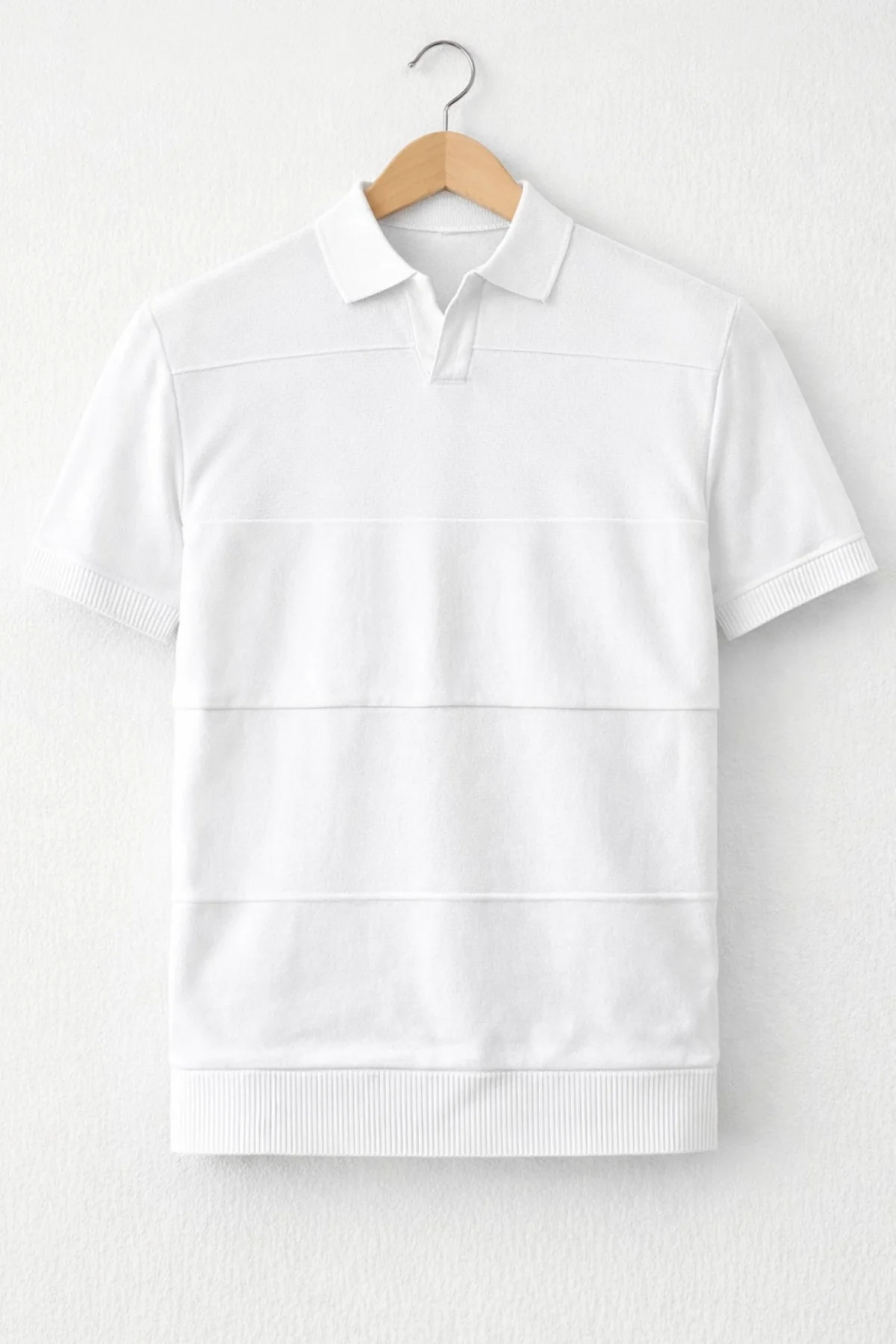 Erkek Açık Yaka Bloklu Triko Tişört Beyaz Cd174
