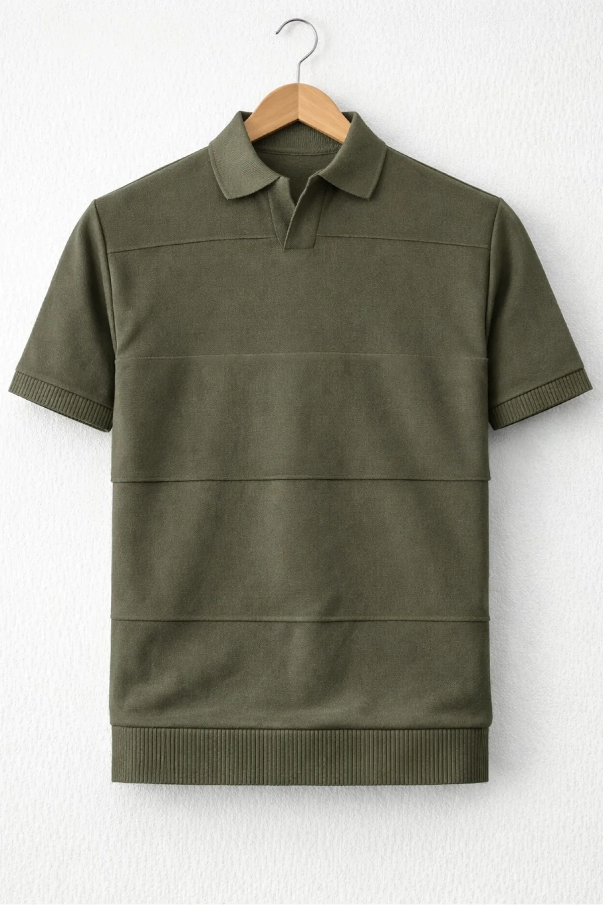 Erkek Açık Yaka Bloklu Triko Tişört Haki Cd174