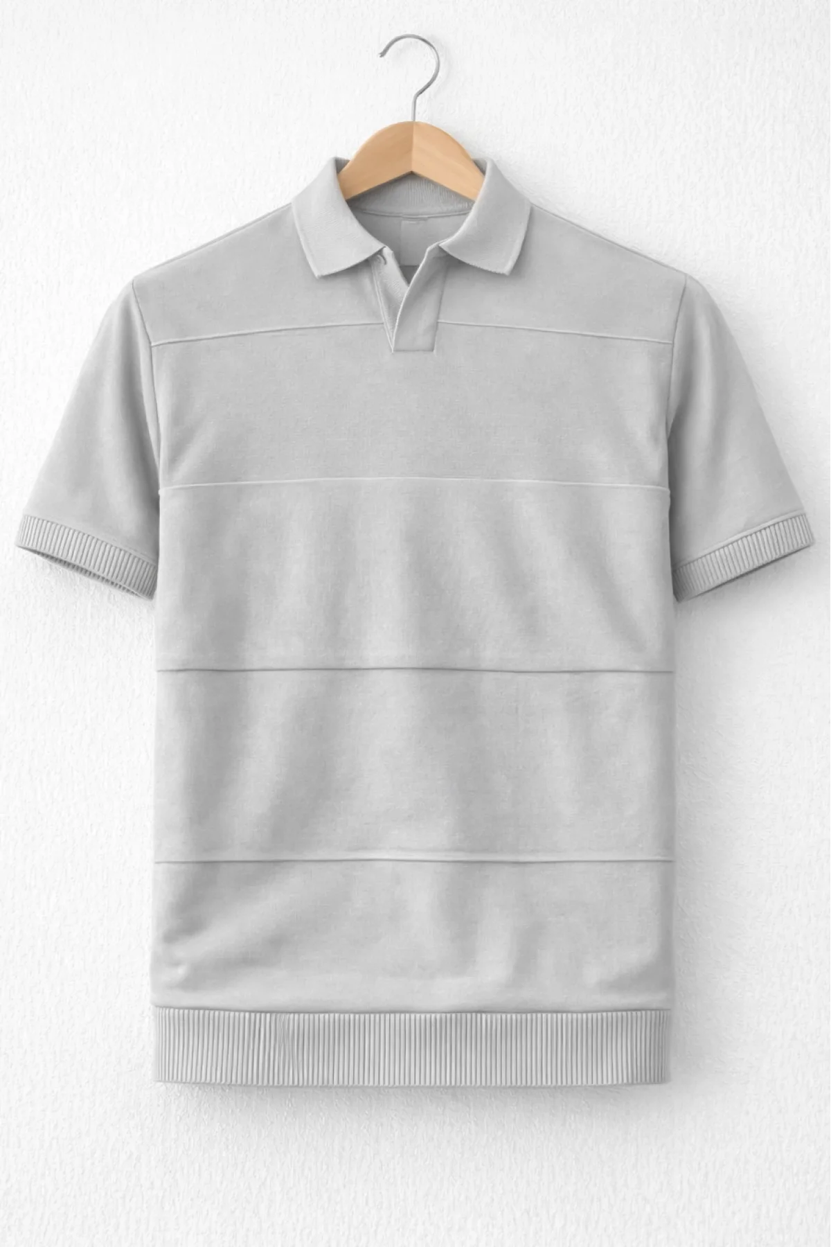 Erkek Açık Yaka Bloklu Triko Tişört Gri Cd174