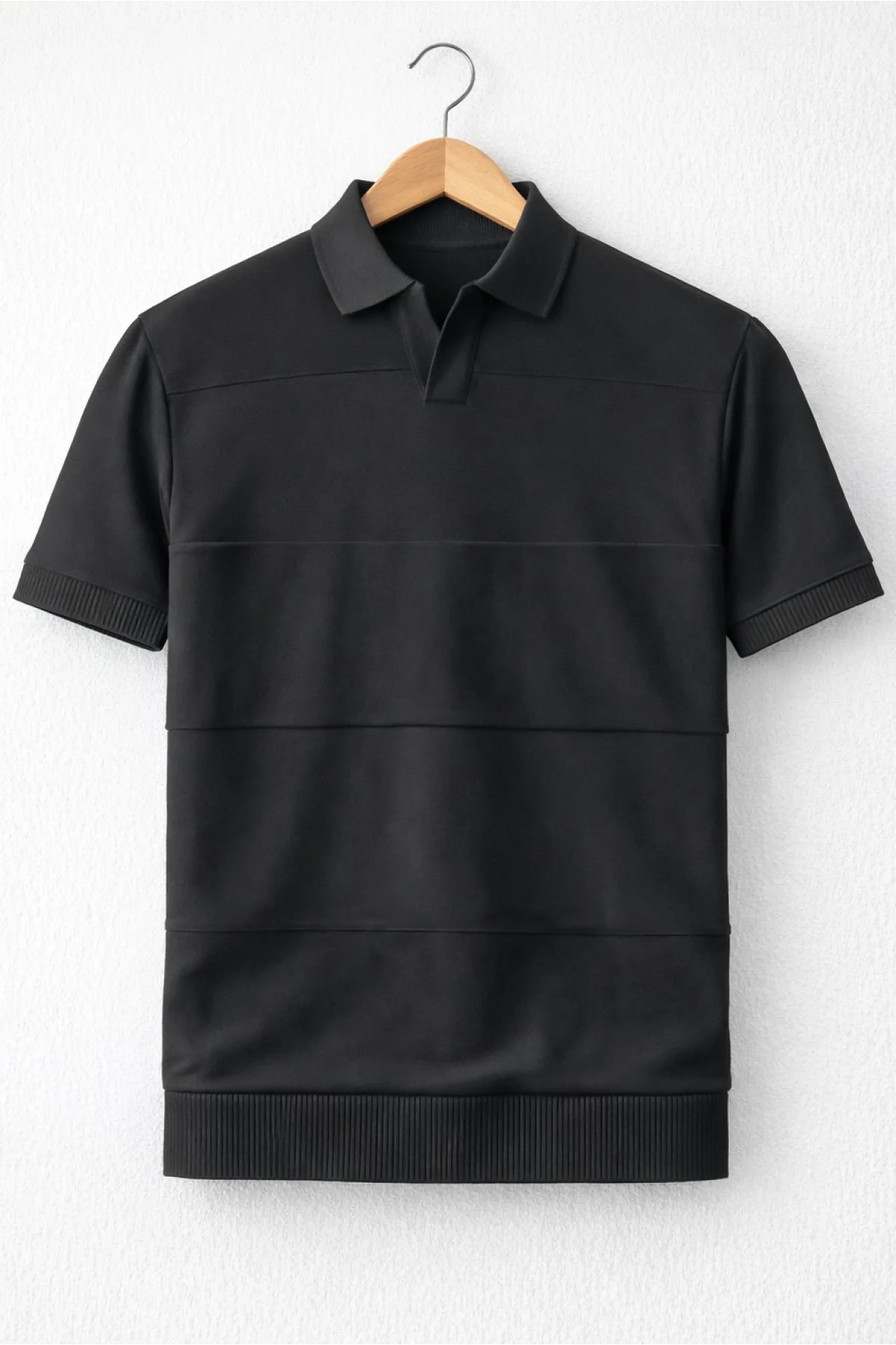 Erkek Açık Yaka Bloklu Triko Tişört Siyah Cd174