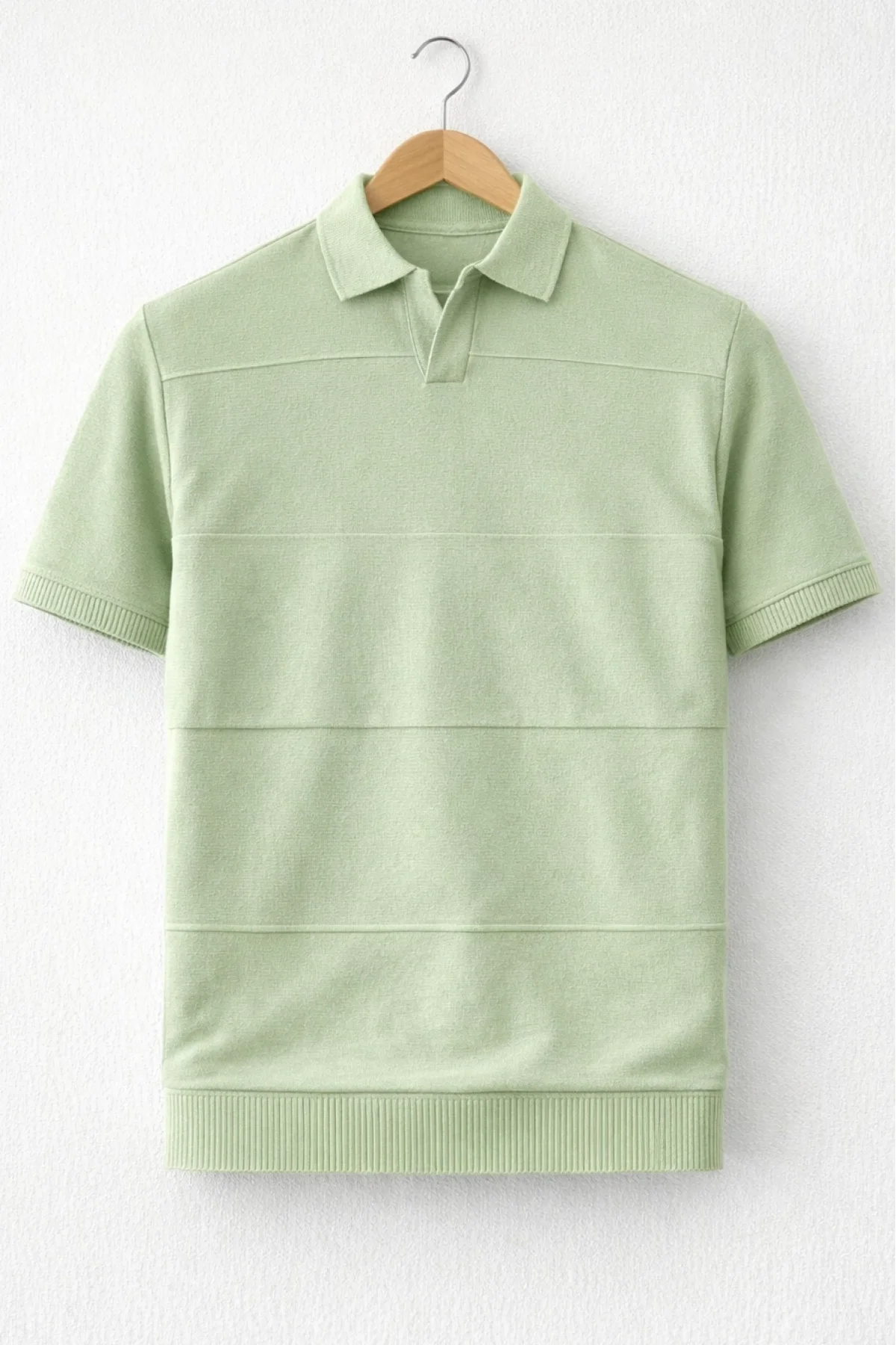 Erkek Polo Yaka Düz Triko Tişört Açık Yeşil Cd173