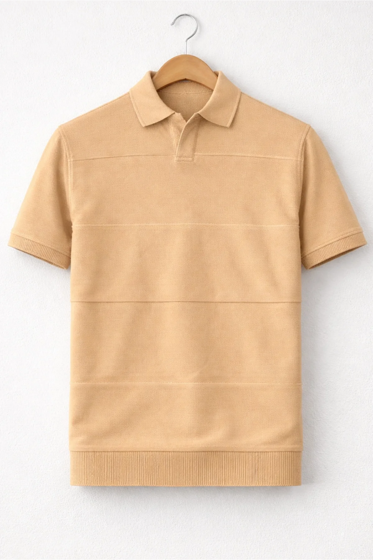 Erkek Polo Yaka Düz Triko Tişört Krem Cd173