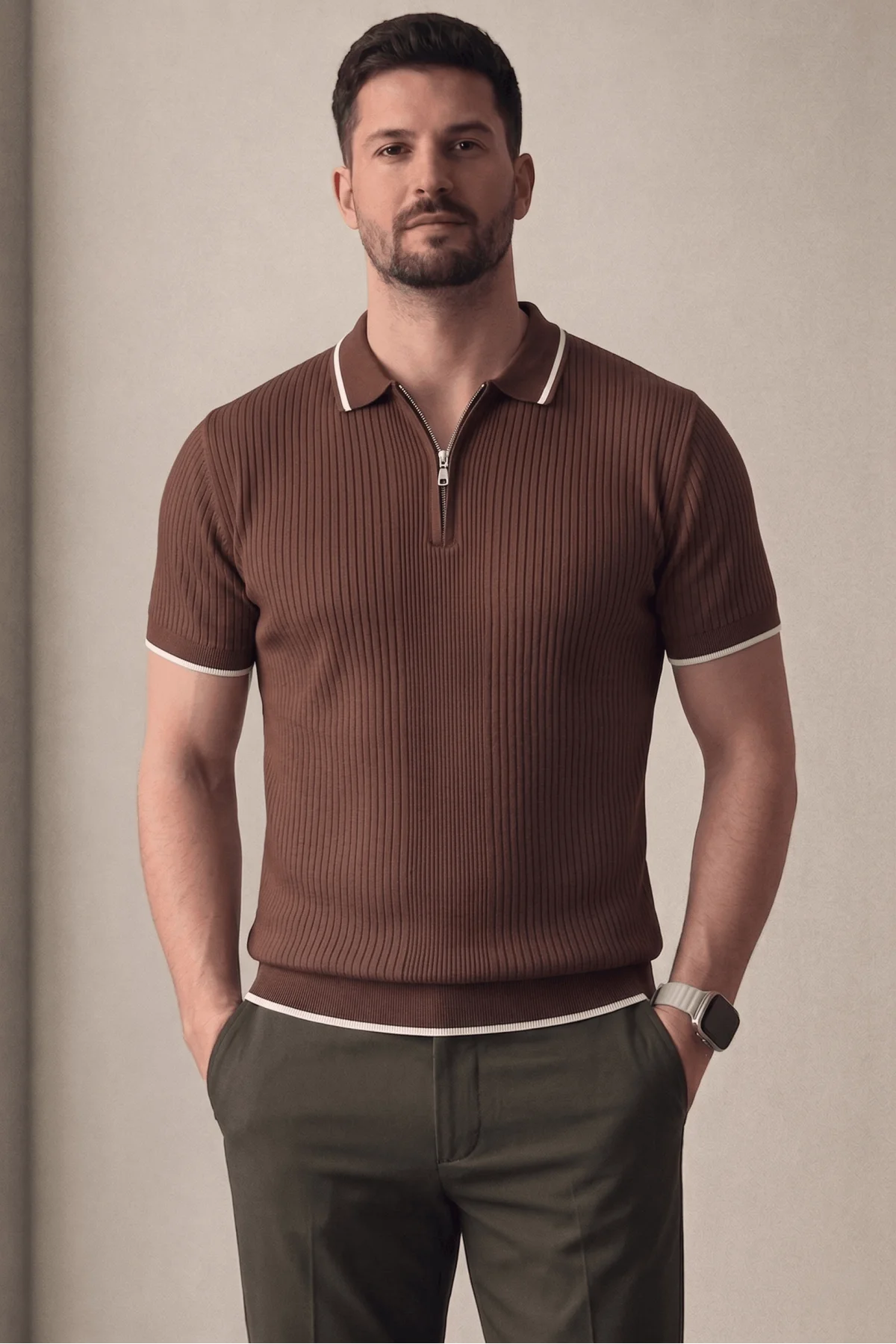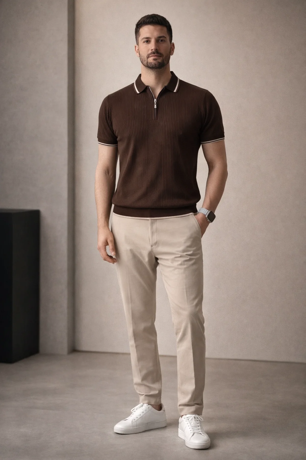 Erkek Polo Yaka Çizgili Tişört Kahverengi Cd177