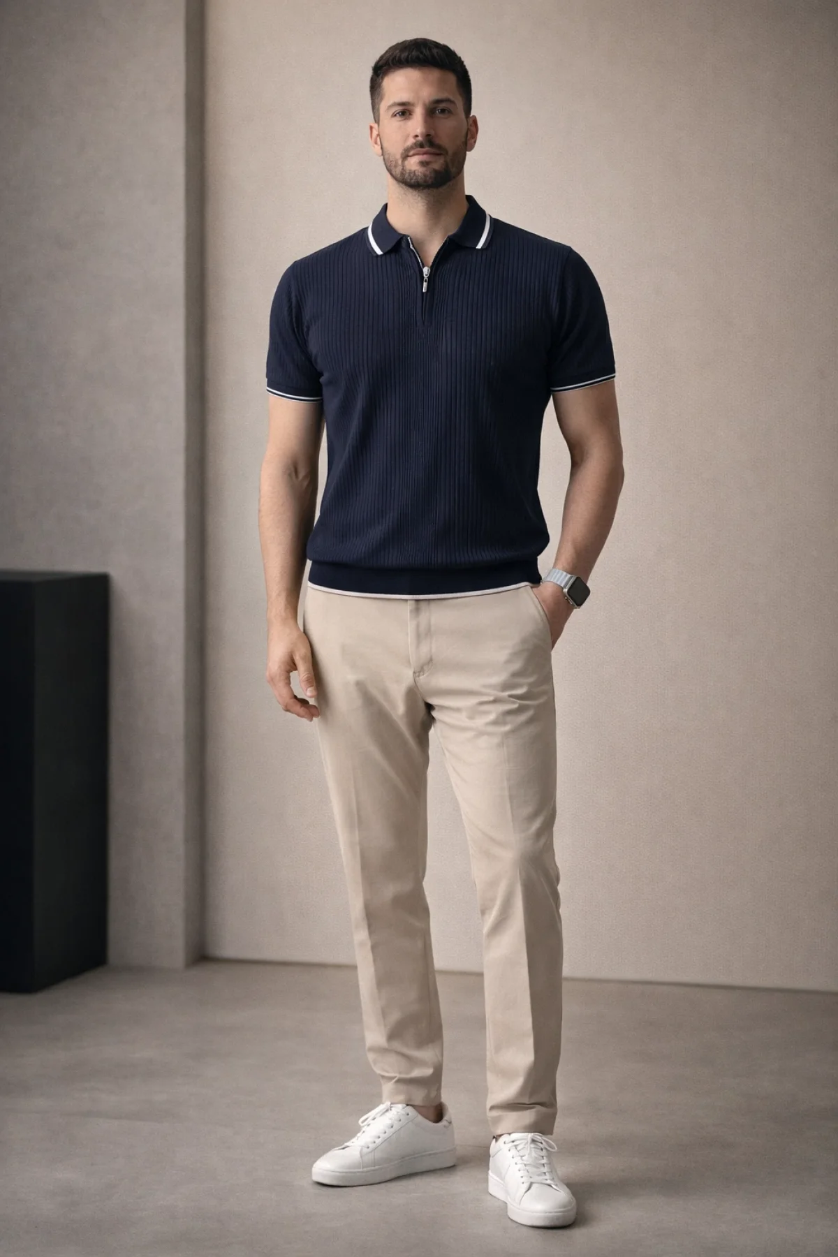 Erkek Polo Yaka Çizgili Tişört Lacivert Cd177