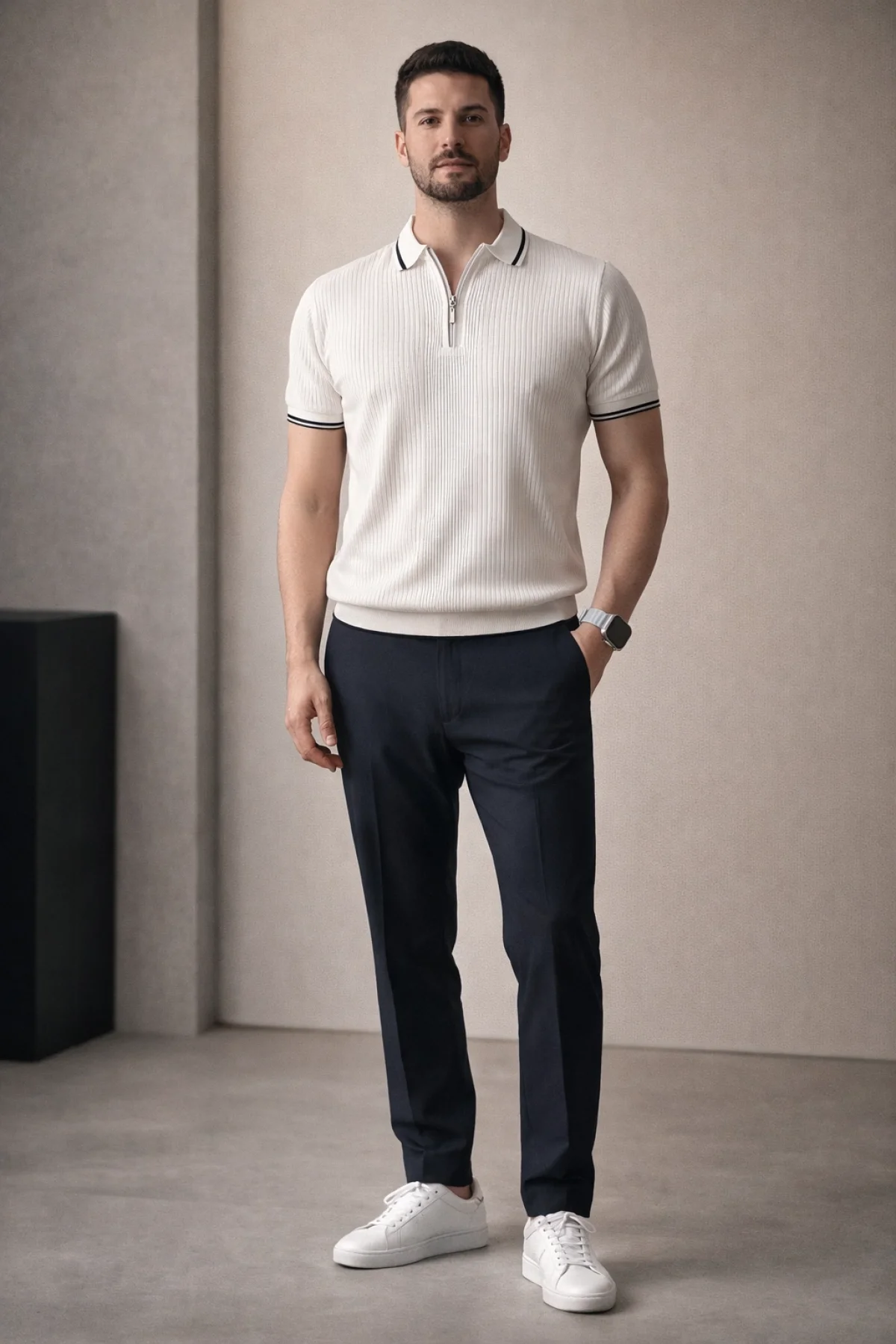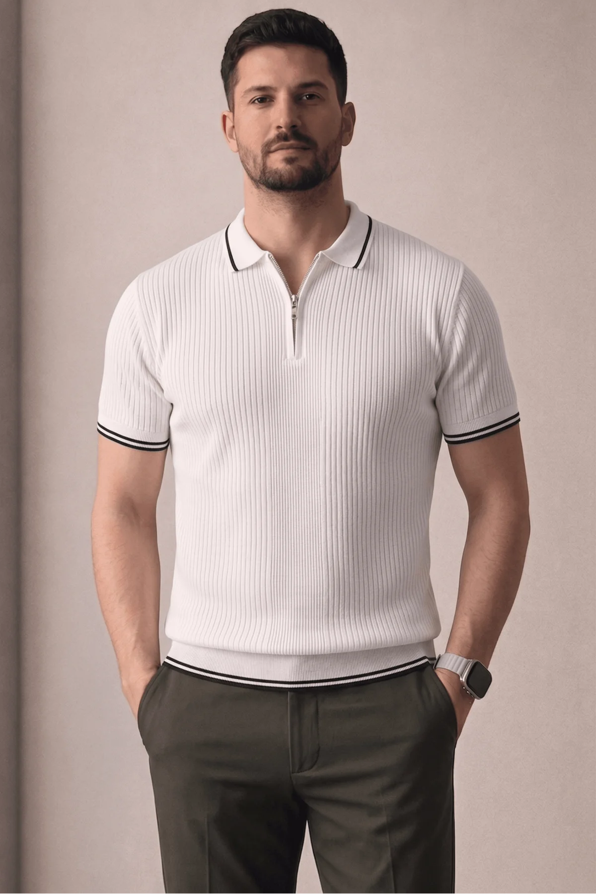 Erkek Polo Yaka Çizgili Tişört Beyaz Cd177