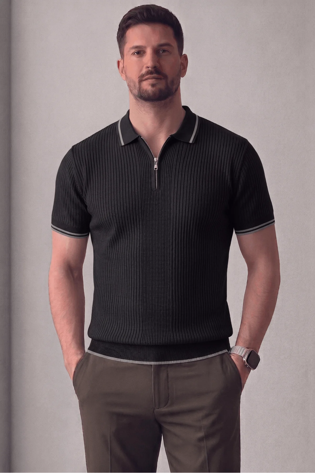 Erkek Polo Yaka Çizgili Tişört Siyah Cd177