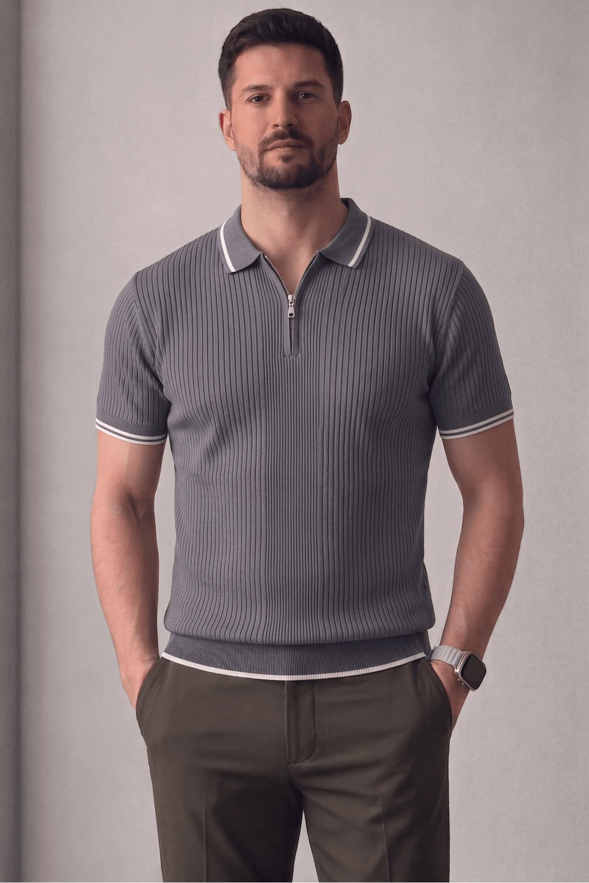 Erkek Polo Yaka Çizgili Tişört Füme Cd177