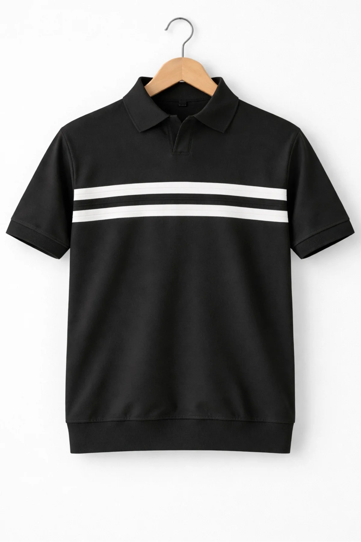 Erkek Açık Yaka Çizgi Desenli Triko Tişört Siyah Cd176