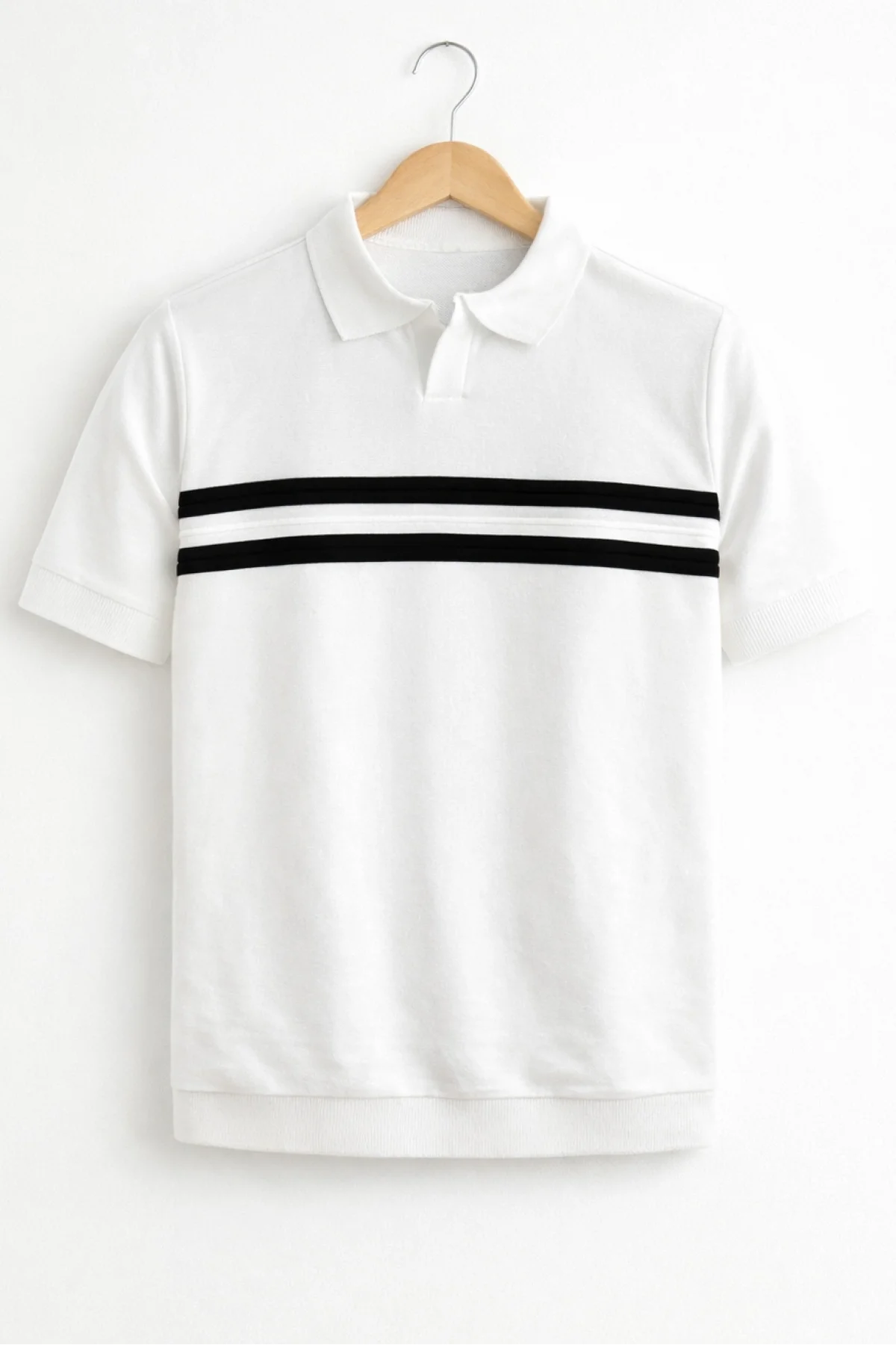 Erkek Polo Yaka Çizgili Tişört Beyaz Cd177
