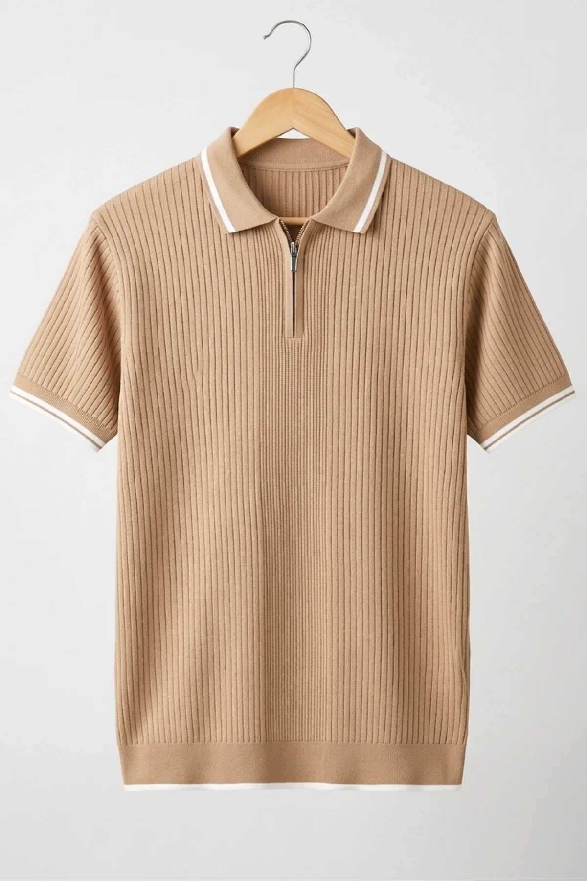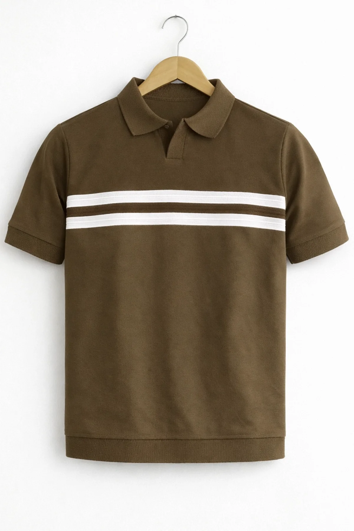 Erkek Polo Yaka Çizgili Tişört Açık Kahverengi Cd177