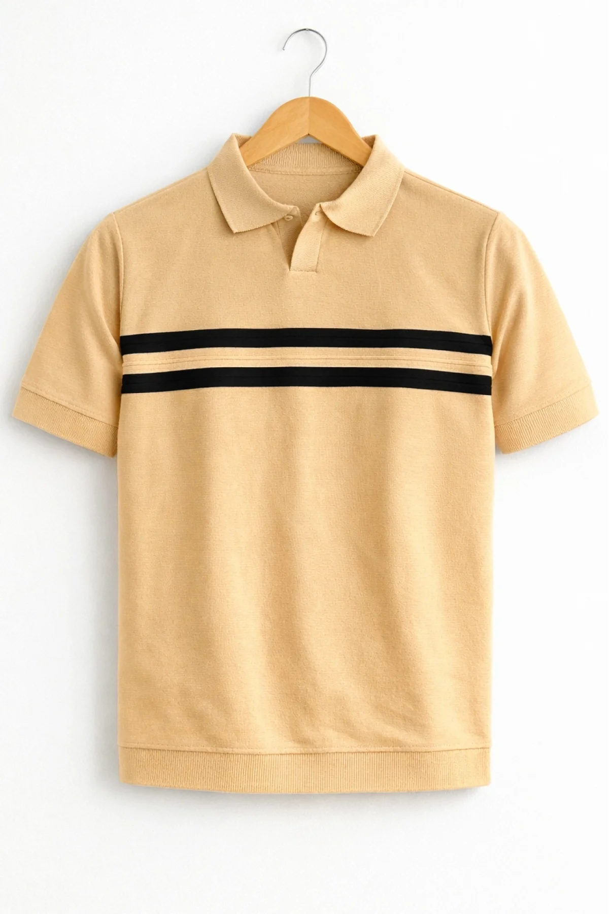 Erkek Polo Yaka Çizgili Tişört Krem Cd177
