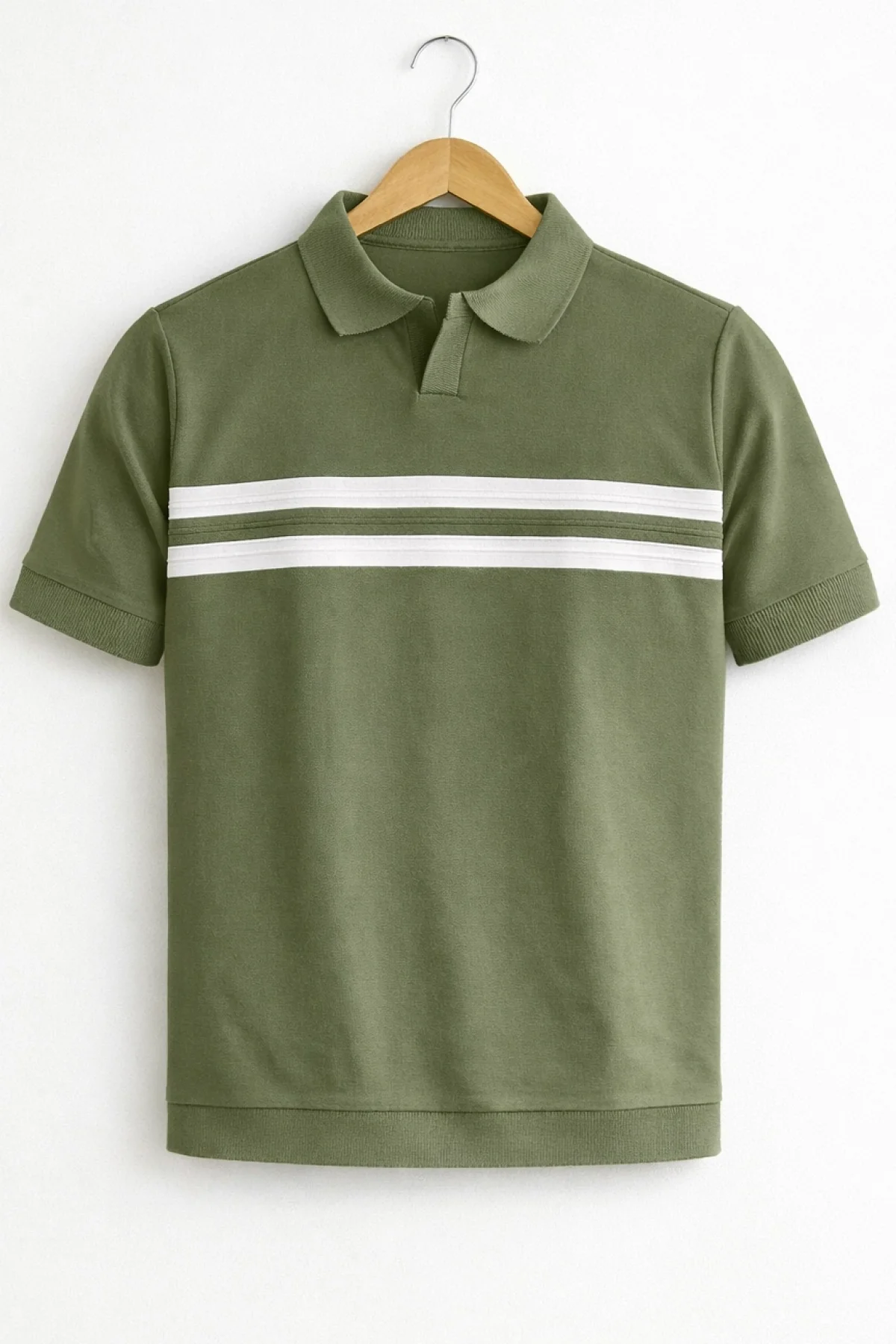 Erkek Açık Yaka Çizgi Desenli Triko Tişört Yeşil Cd176