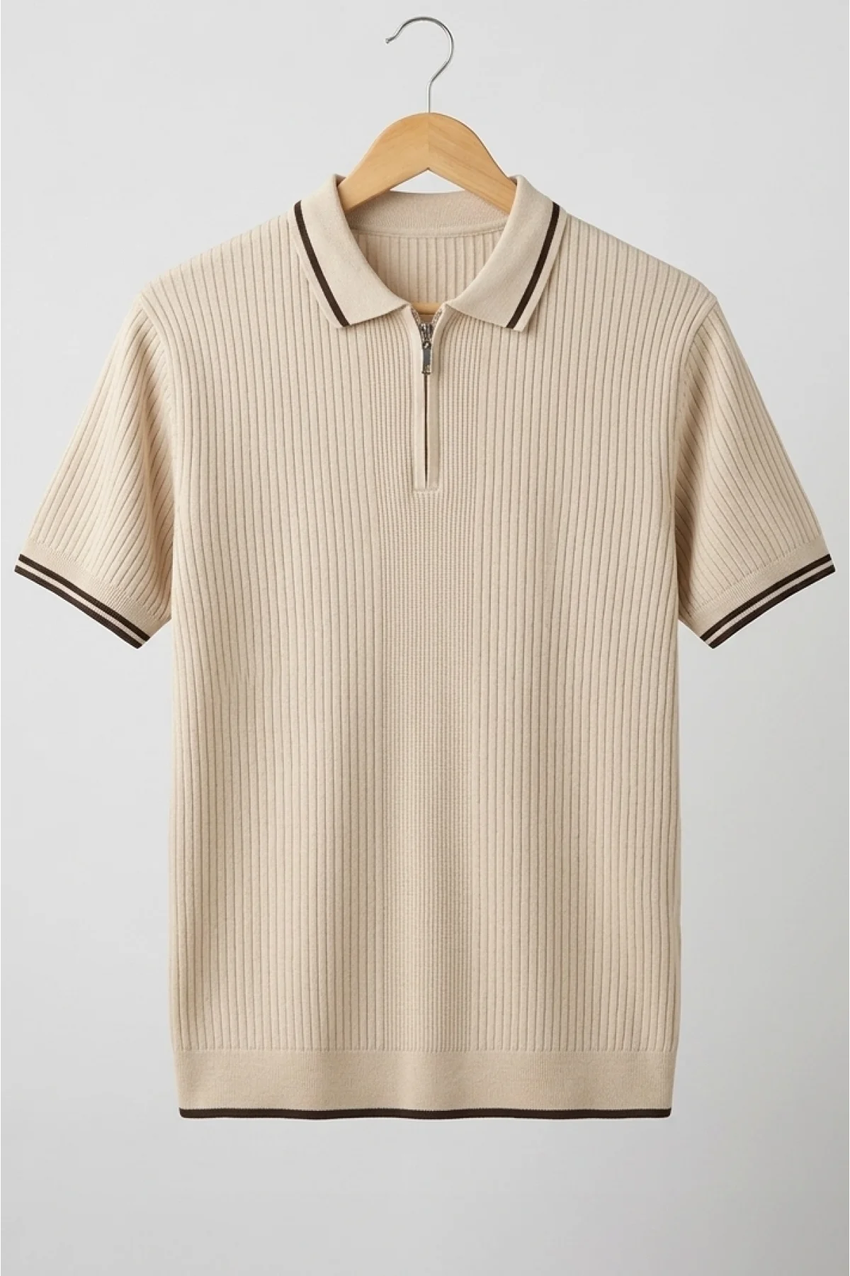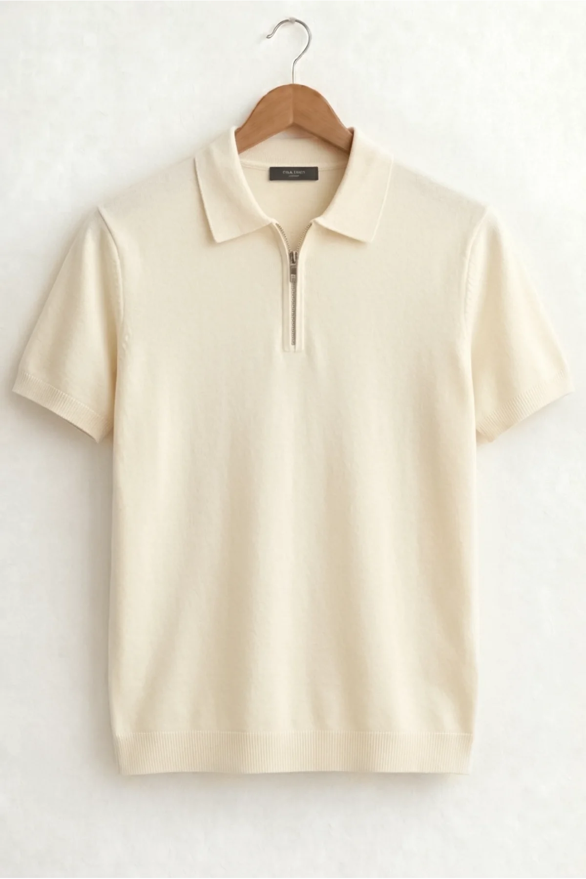 Erkek Polo Yaka Düz Triko Tişört Krem Cd173