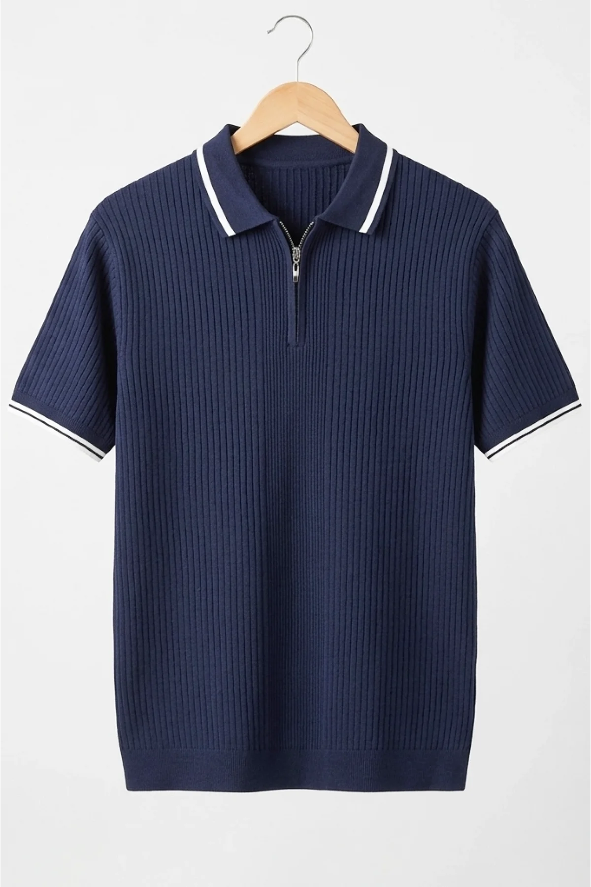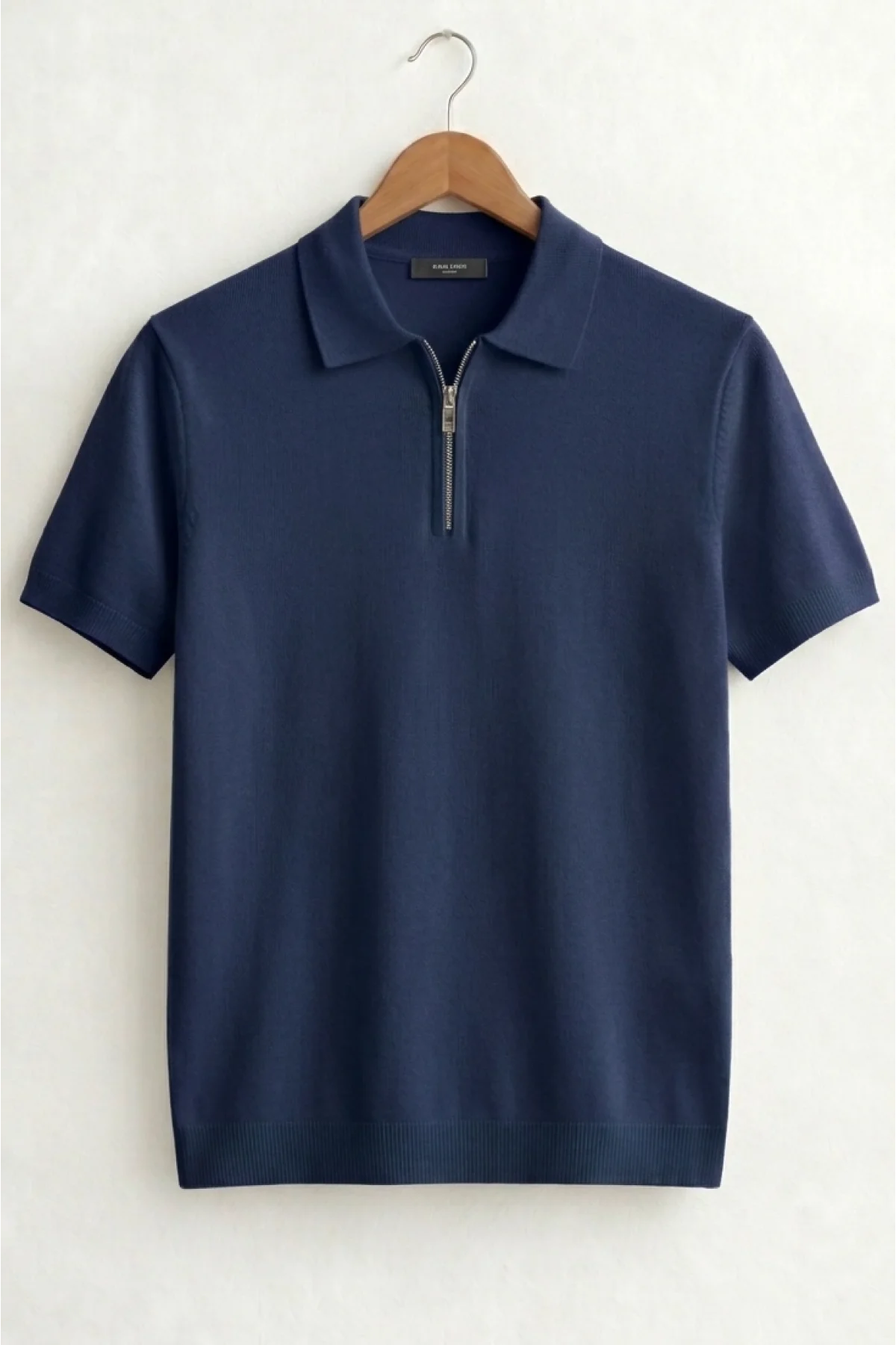 Erkek Polo Yaka Düz Triko Tişört Lacivert Cd173