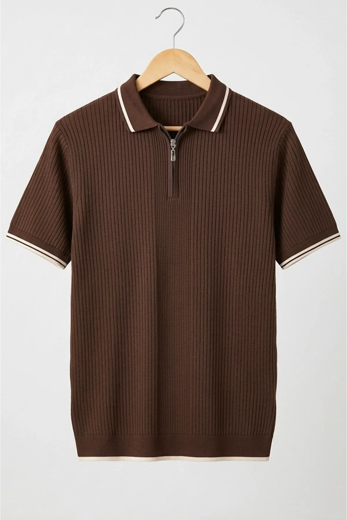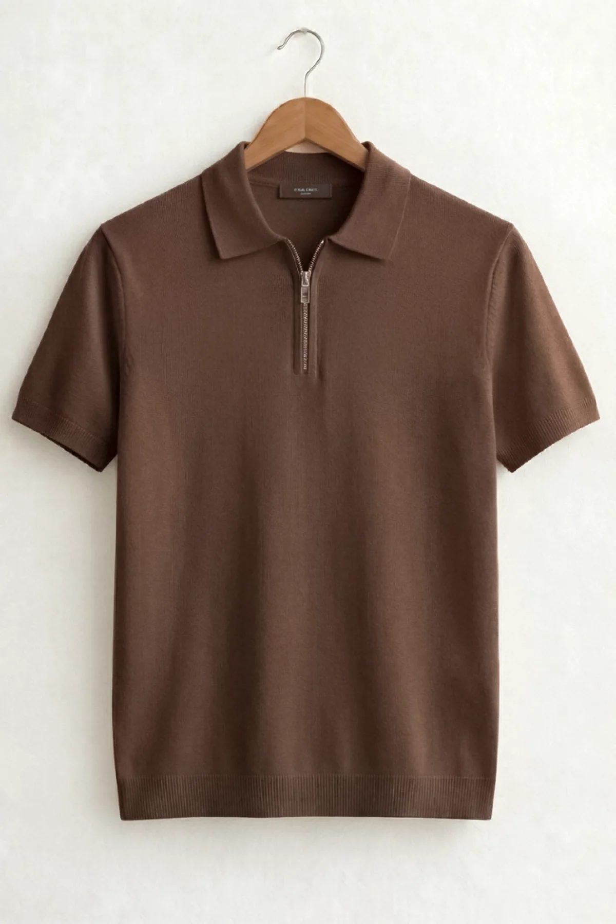 Erkek Polo Yaka Düz Triko Tişört Kahverengi Cd173
