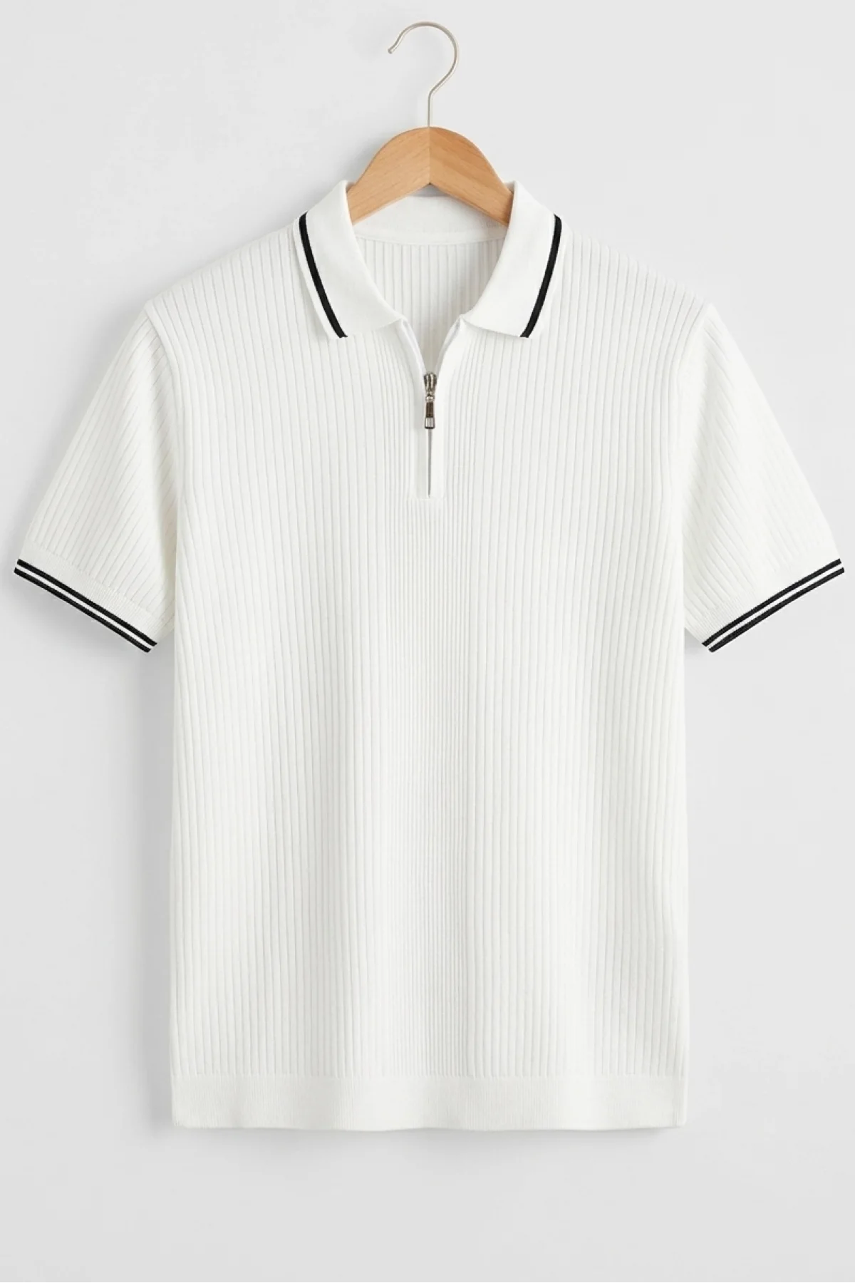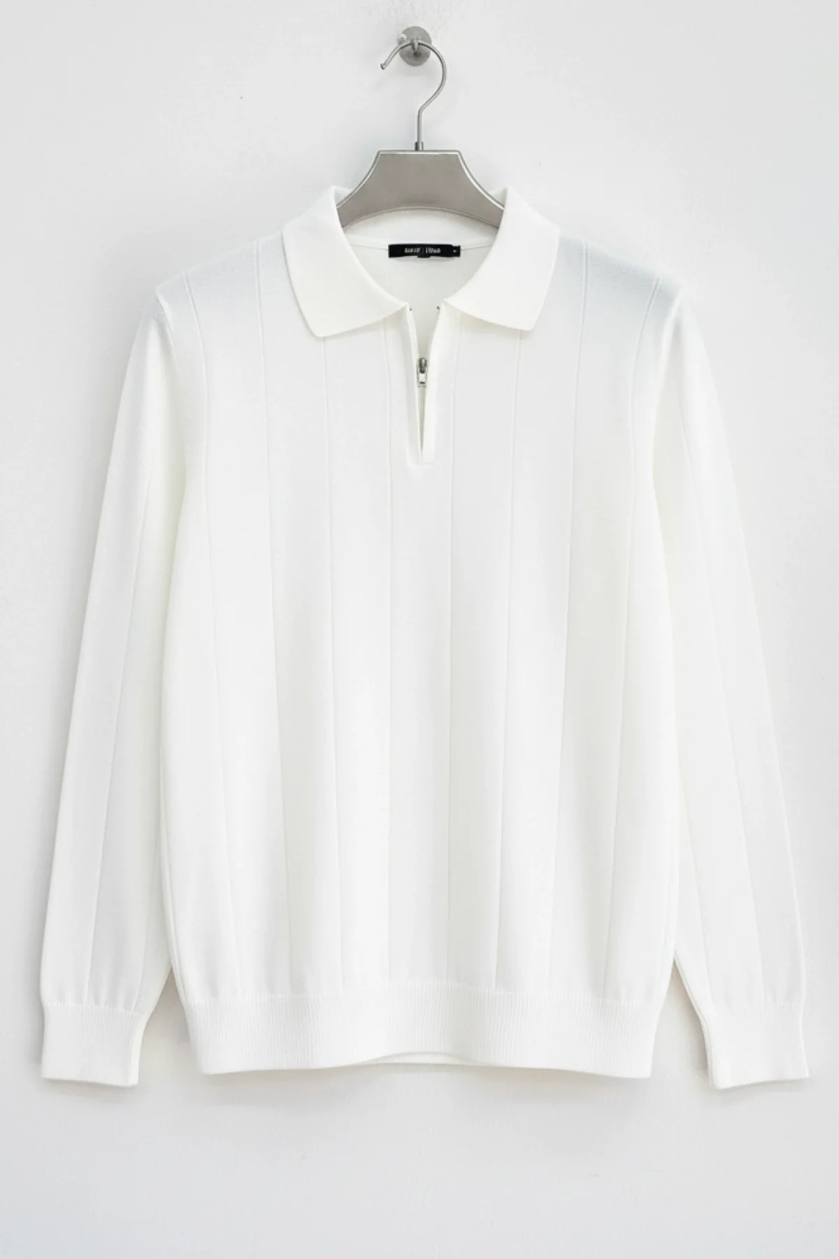 Erkek Yarım Fermuarlı Polo Yaka Normal Kalıp Kazak Beyaz Cd101