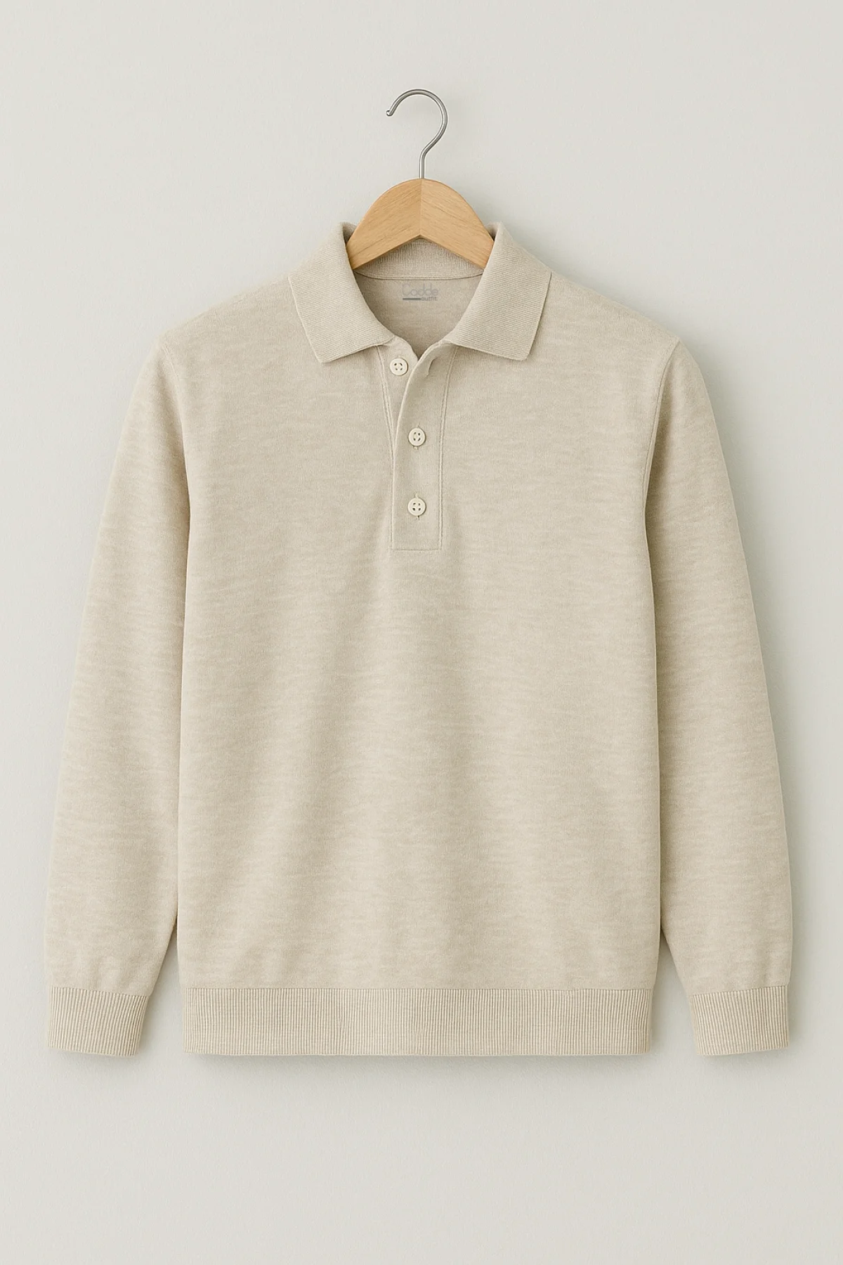 Erkek Yarım Fermuarlı Polo Yaka Normal Kalıp Kazak Krem Cd101