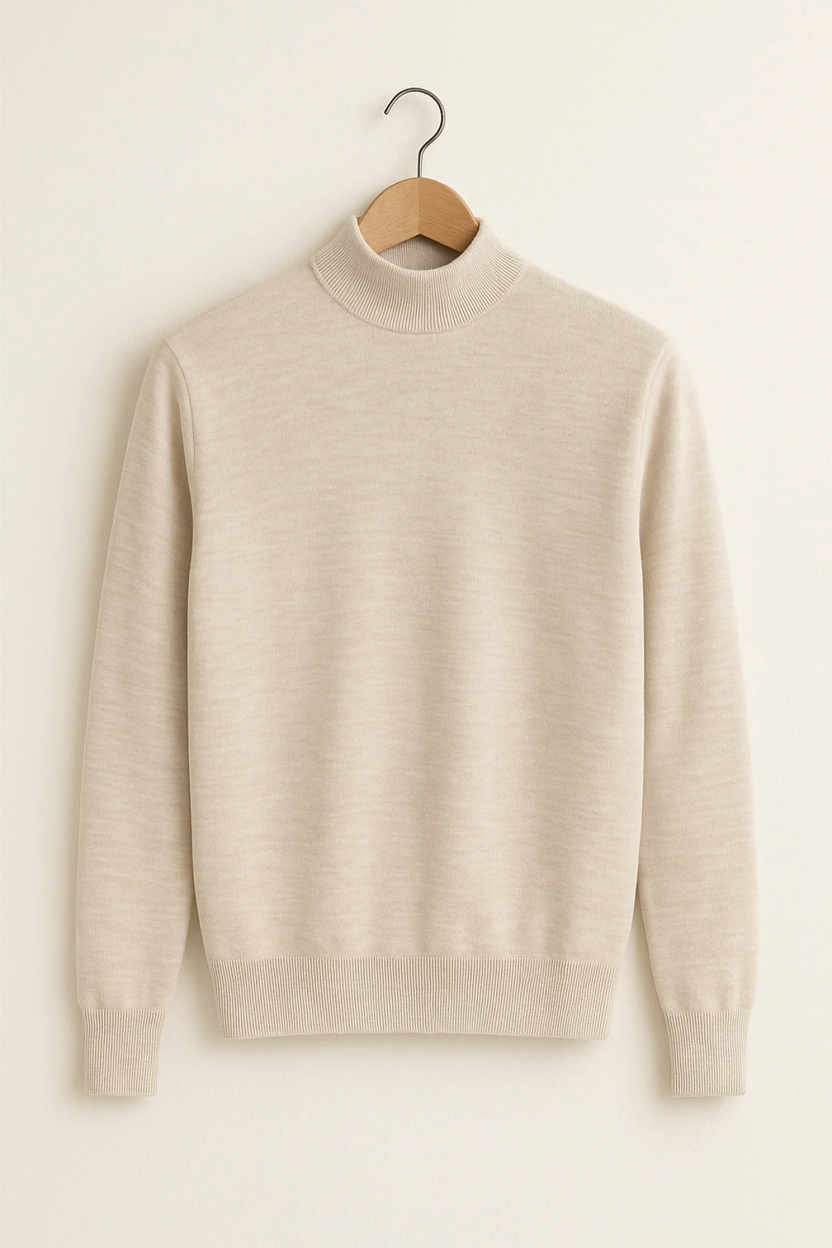 Erkek Yarım Balıkçı Normal Kalıp Kazak Krem Cd117
