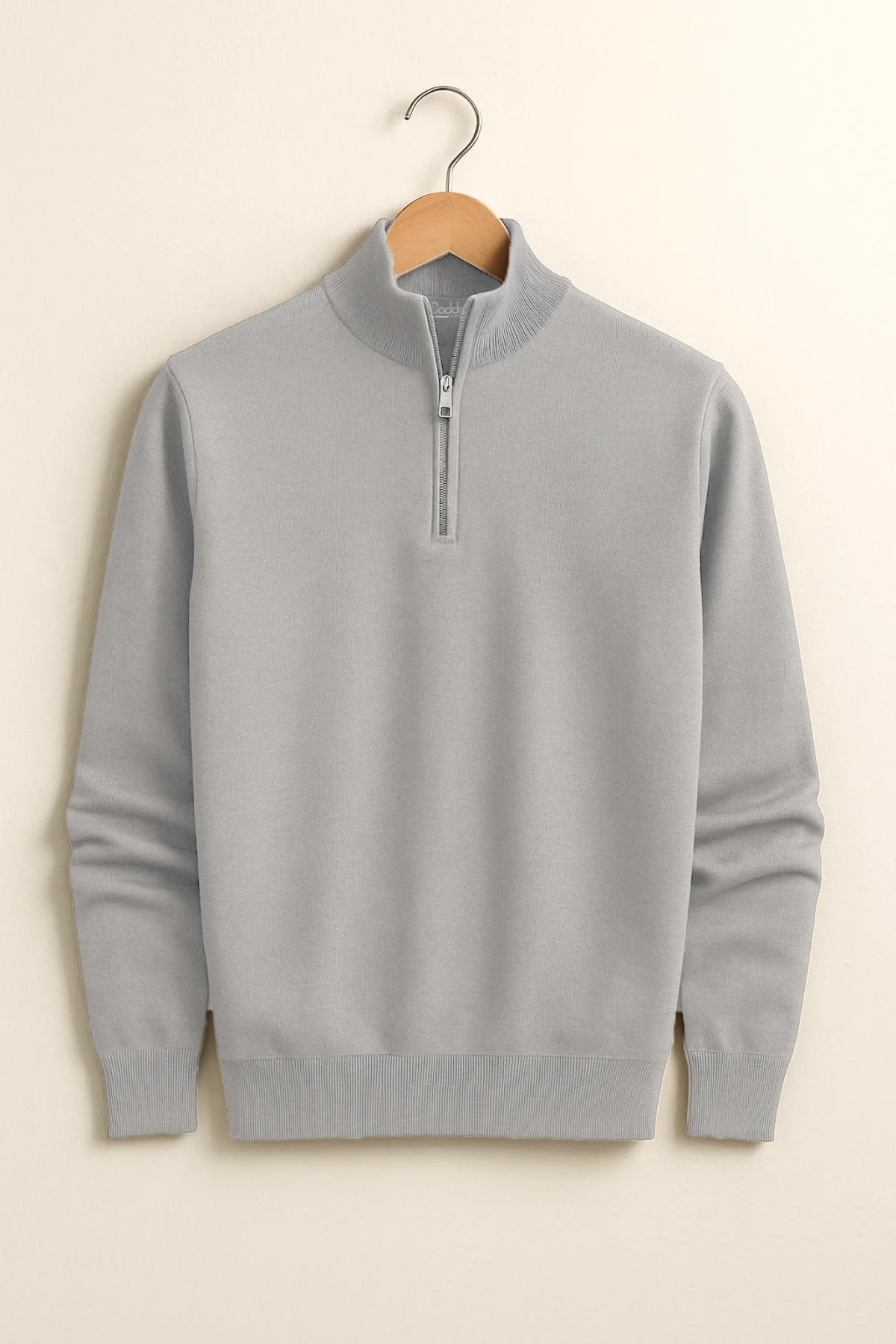 Erkek Yarım Fermuarlı Normal Kalıp Kazak Gri Cd116