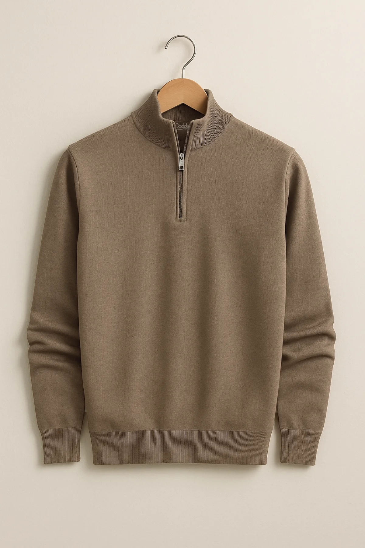 Erkek Yarım Fermuarlı Normal Kalıp Kazak Kahverengi Cd116