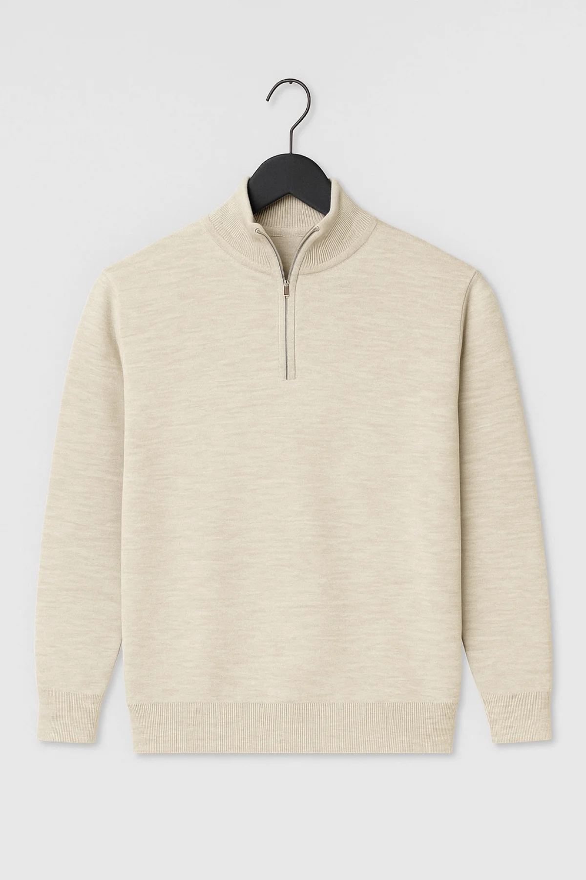 Erkek Yarım Fermuarlı Normal Kalıp Kazak Krem Cd116