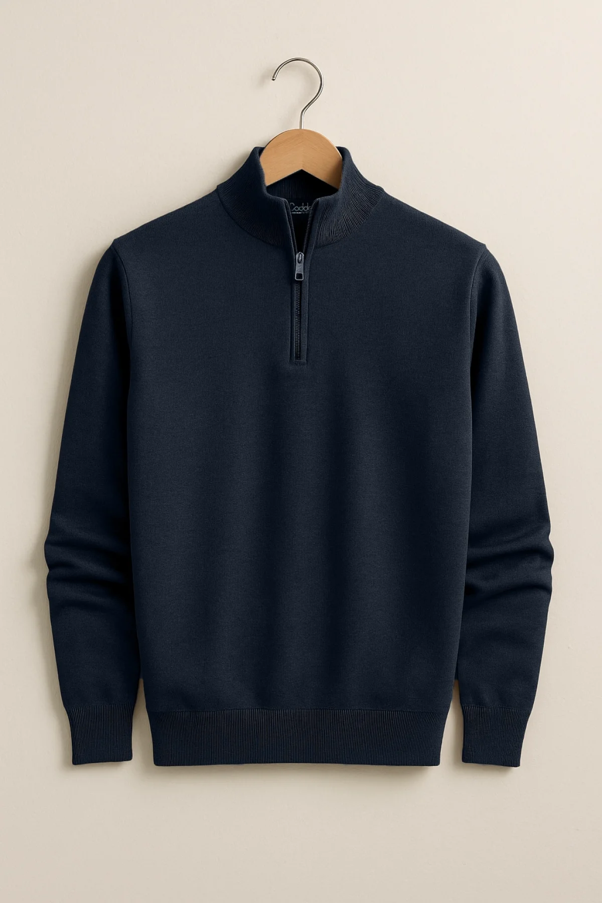 Erkek Yarım Fermuarlı Normal Kalıp Kazak Lacivert Cd116