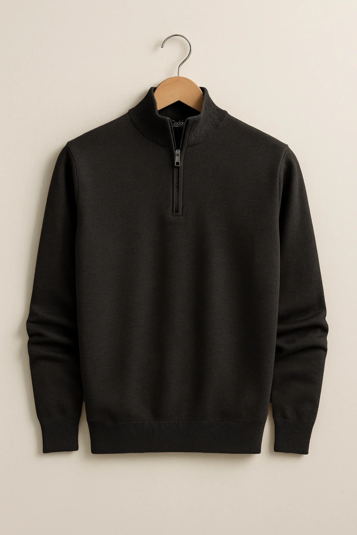 Erkek Yarım Fermuarlı Normal Kalıp Kazak Siyah Cd116