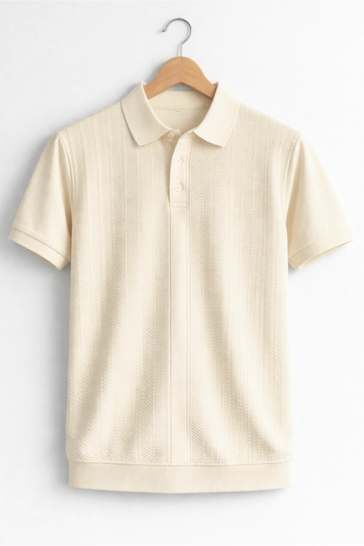 Erkek Polo Yaka Düğmeli Triko Tişört Krem Cd172