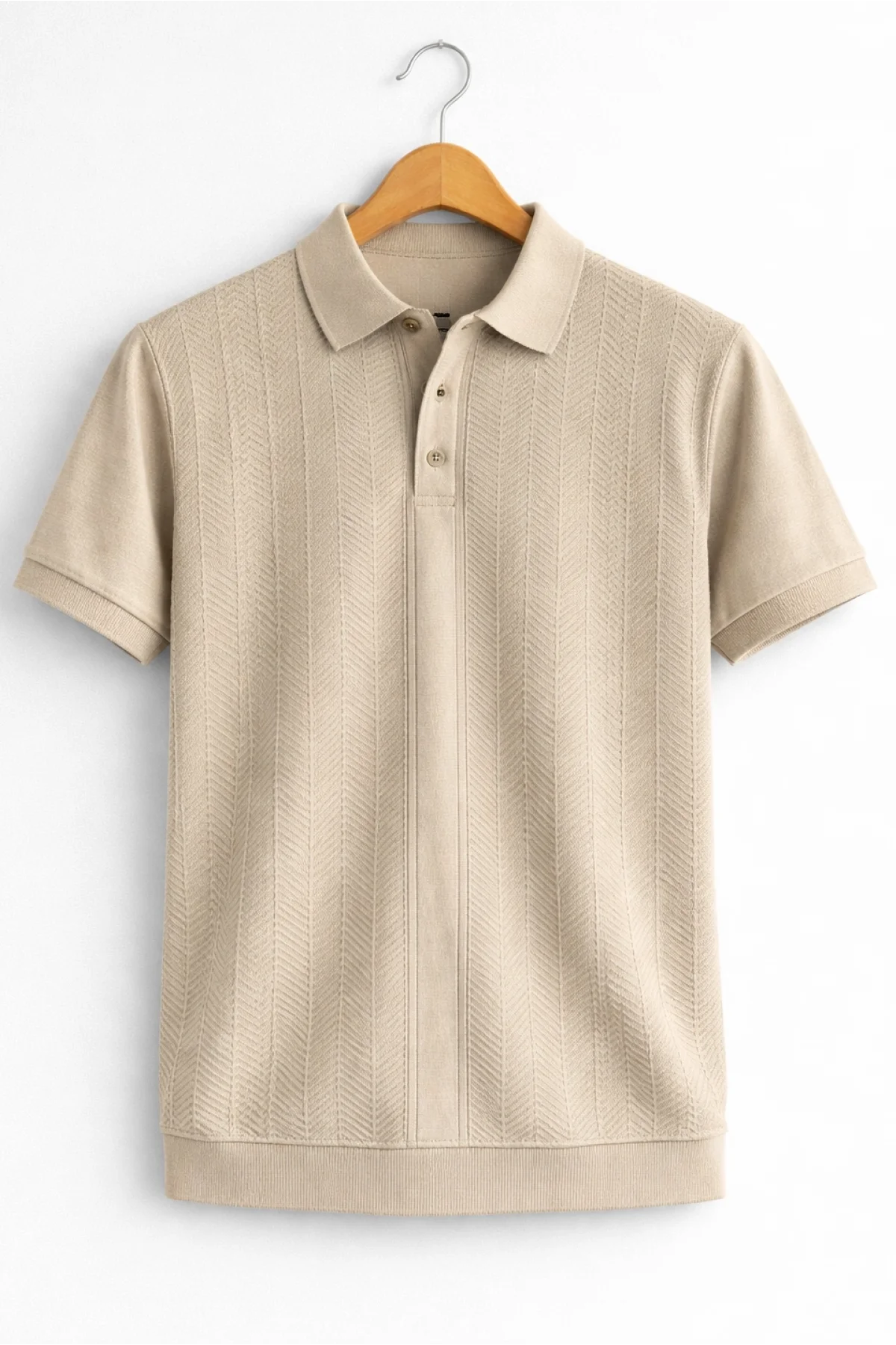 Erkek Polo Yaka Düğmeli Triko Tişört Vizon Cd172