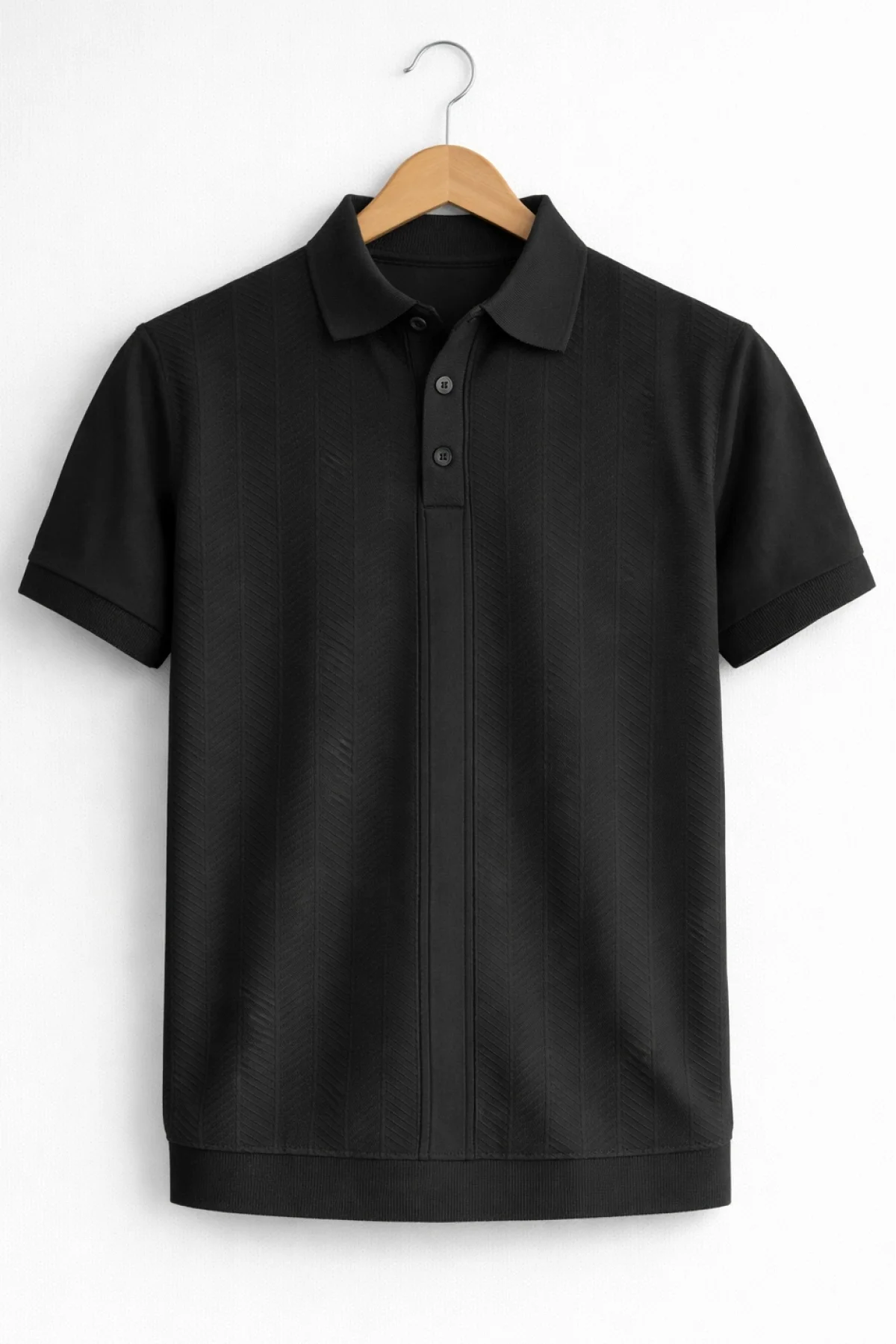Erkek Polo Yaka Düğmeli Triko Tişört Siyah Cd172