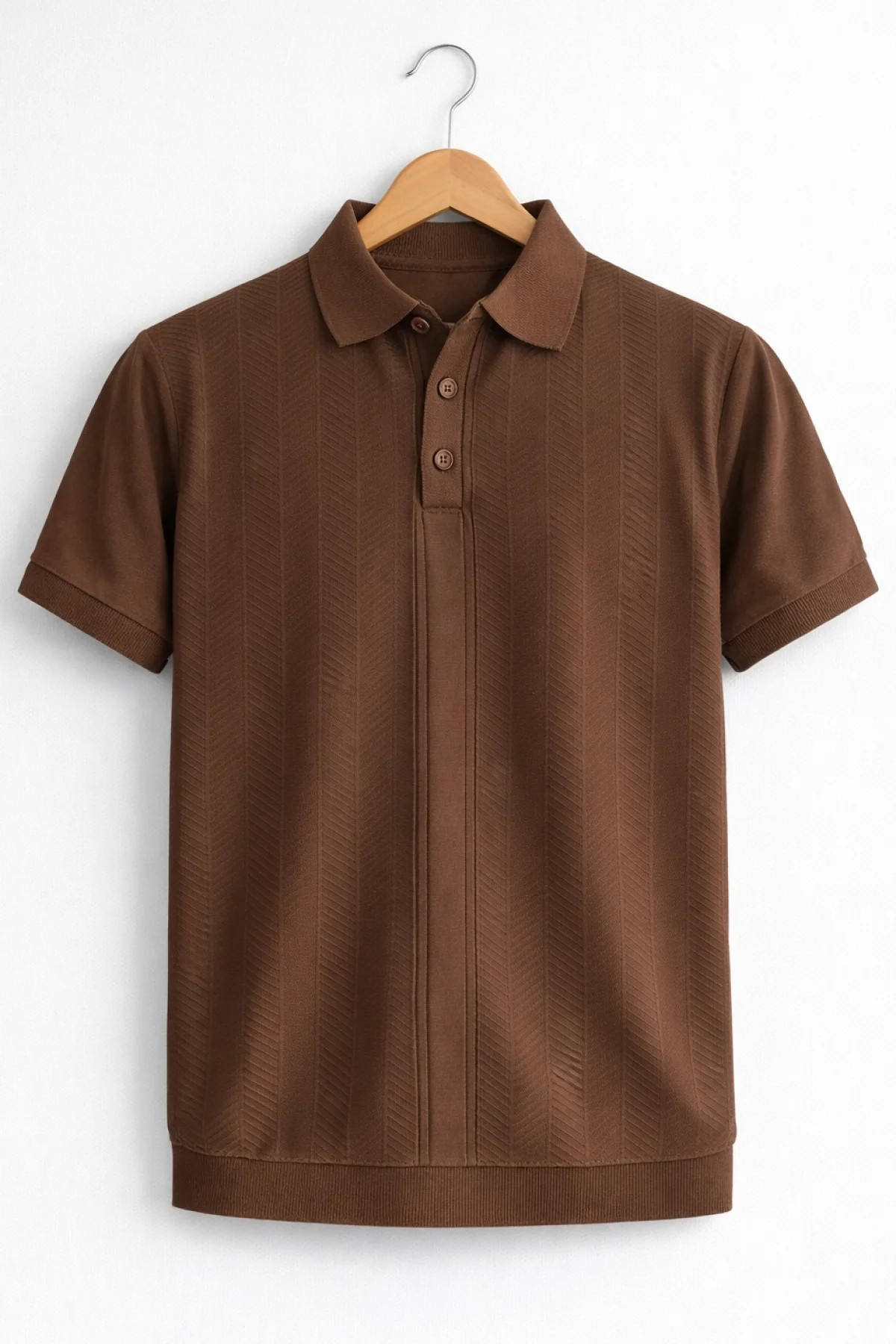 Erkek Polo Yaka Düğmeli Triko Tişört Kahverengi Cd172