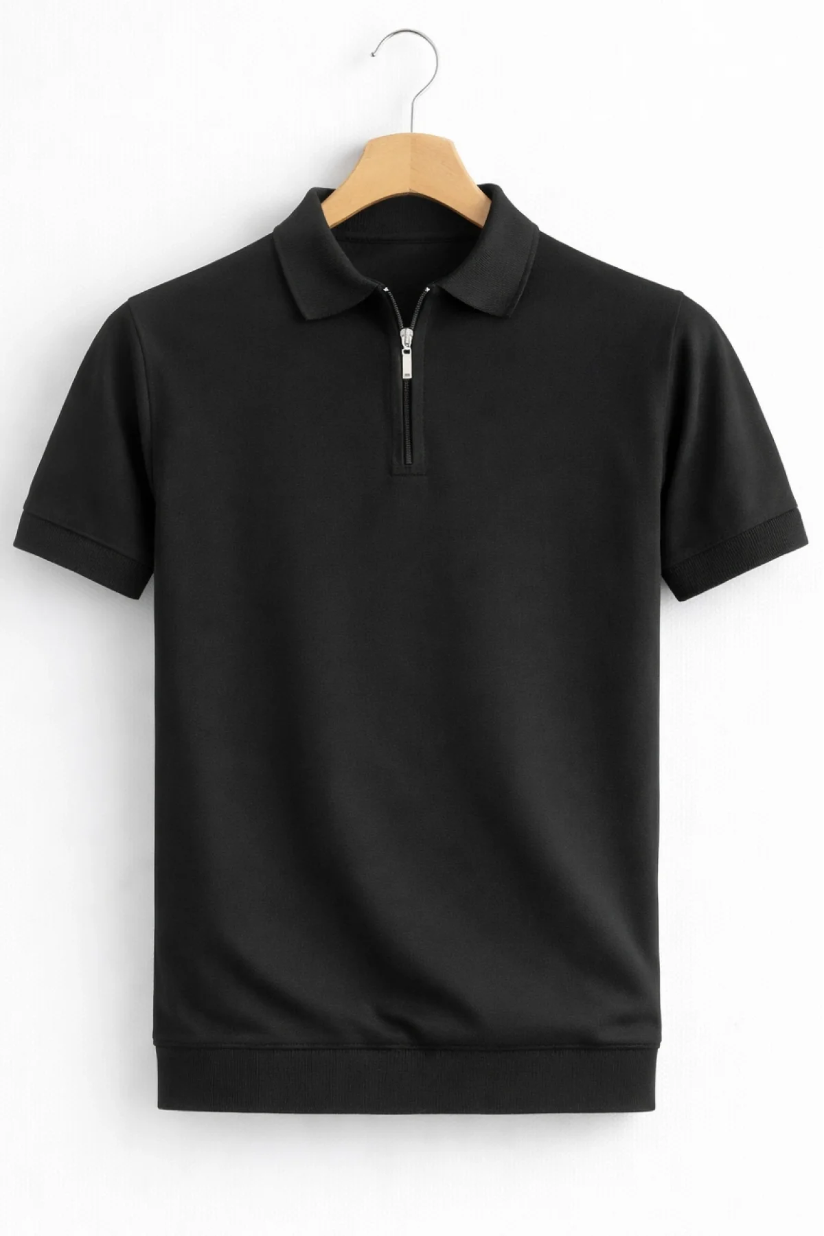 Erkek Polo Yaka Düz Triko Tişört Siyah Cd173