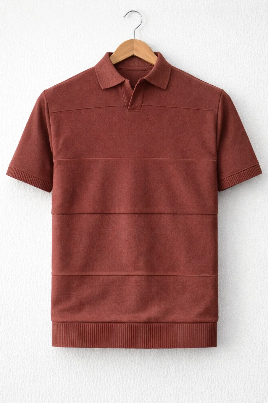 ERKEK AÇIK YAKA BLOKLU TRİKO TİŞÖRT KİREMİT CD174