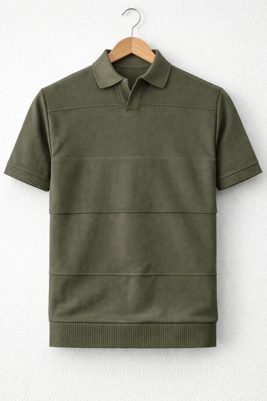 ERKEK AÇIK YAKA BLOKLU TRİKO TİŞÖRT HAKİ CD174