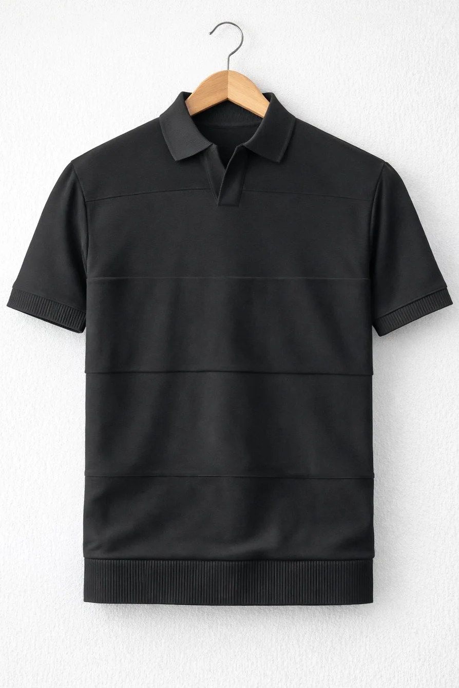 ERKEK AÇIK YAKA BLOKLU TRİKO TİŞÖRT SİYAH CD174