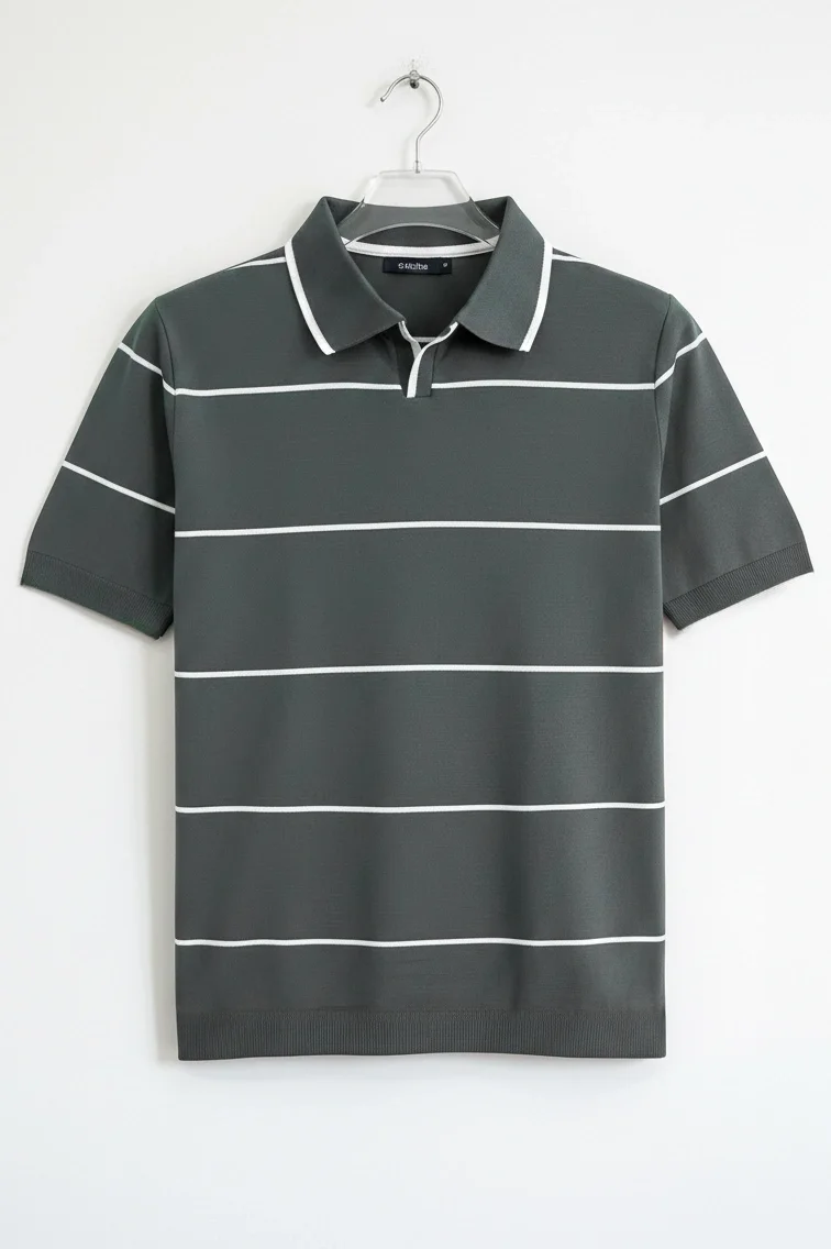 ERKEK AÇIK YAKA ÇİZGİLİ TRİKO TİŞÖRT FÜME CD151