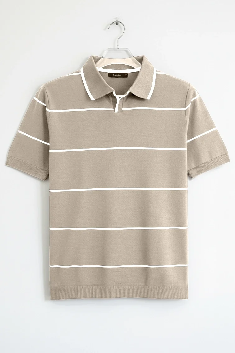 ERKEK AÇIK YAKA ÇİZGİLİ TRİKO TİŞÖRT VİZON CD151