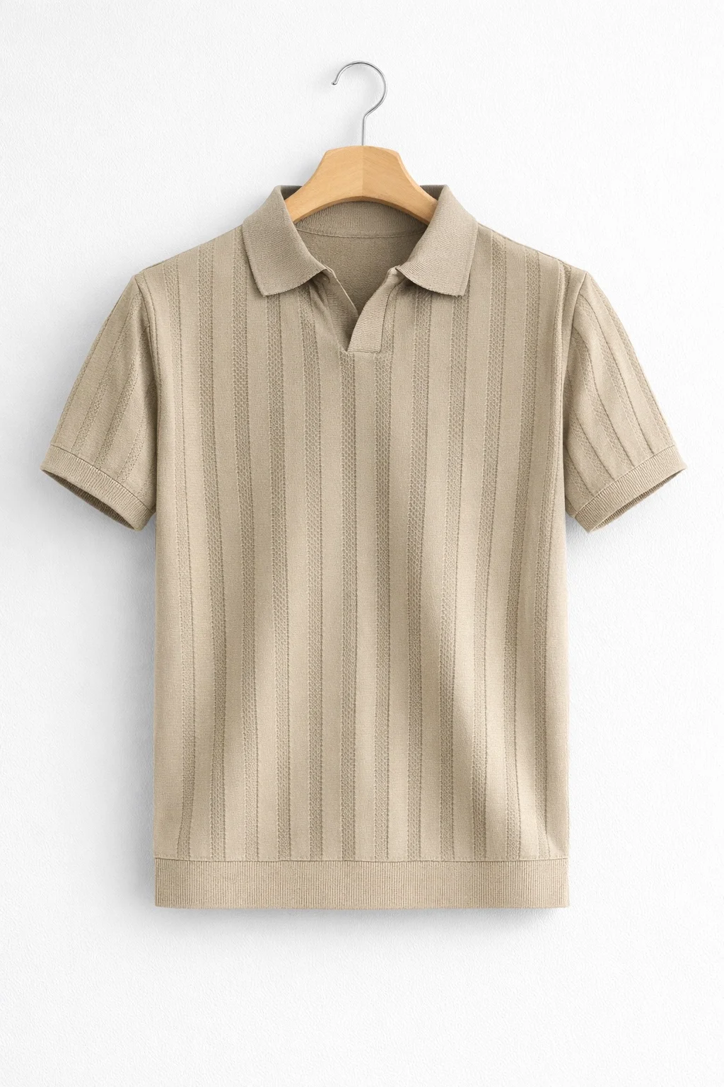 Erkek Polo Yaka Düğmeli Triko Tişört Vizon Cd172