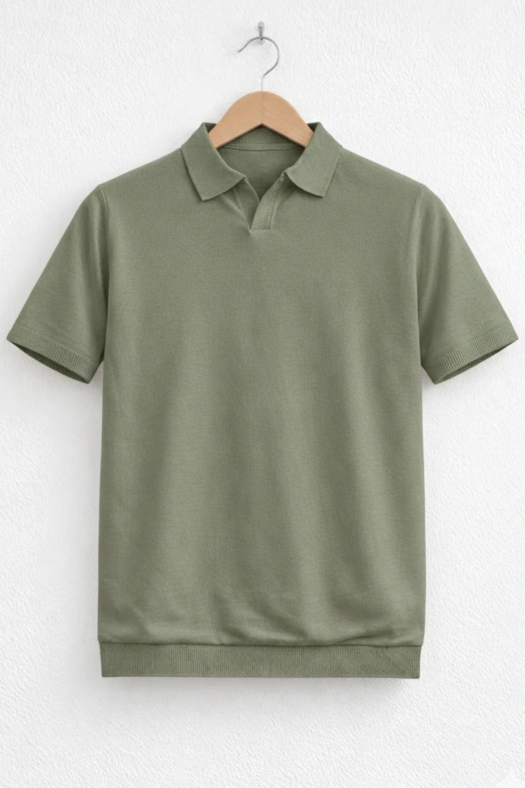 ERKEK AÇIK YAKA DÜZ TRİKO TİŞÖRT AÇIK YEŞİL CD167