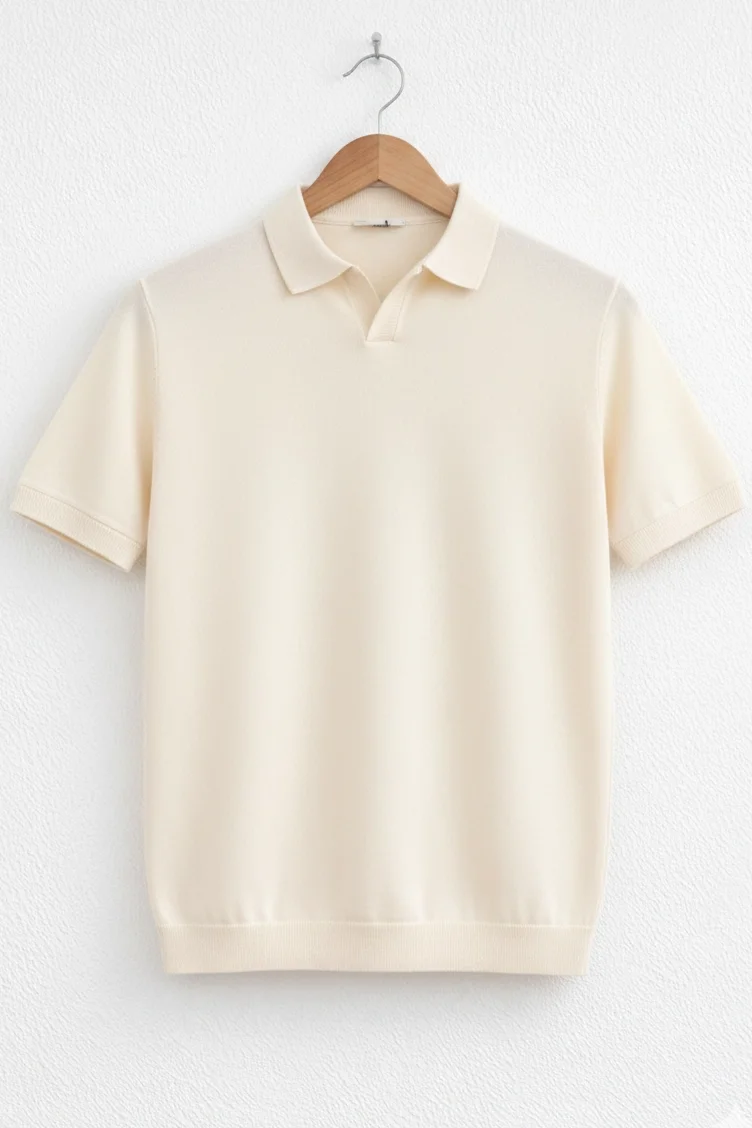 Erkek Polo Yaka Düz Triko Tişört Krem Cd173