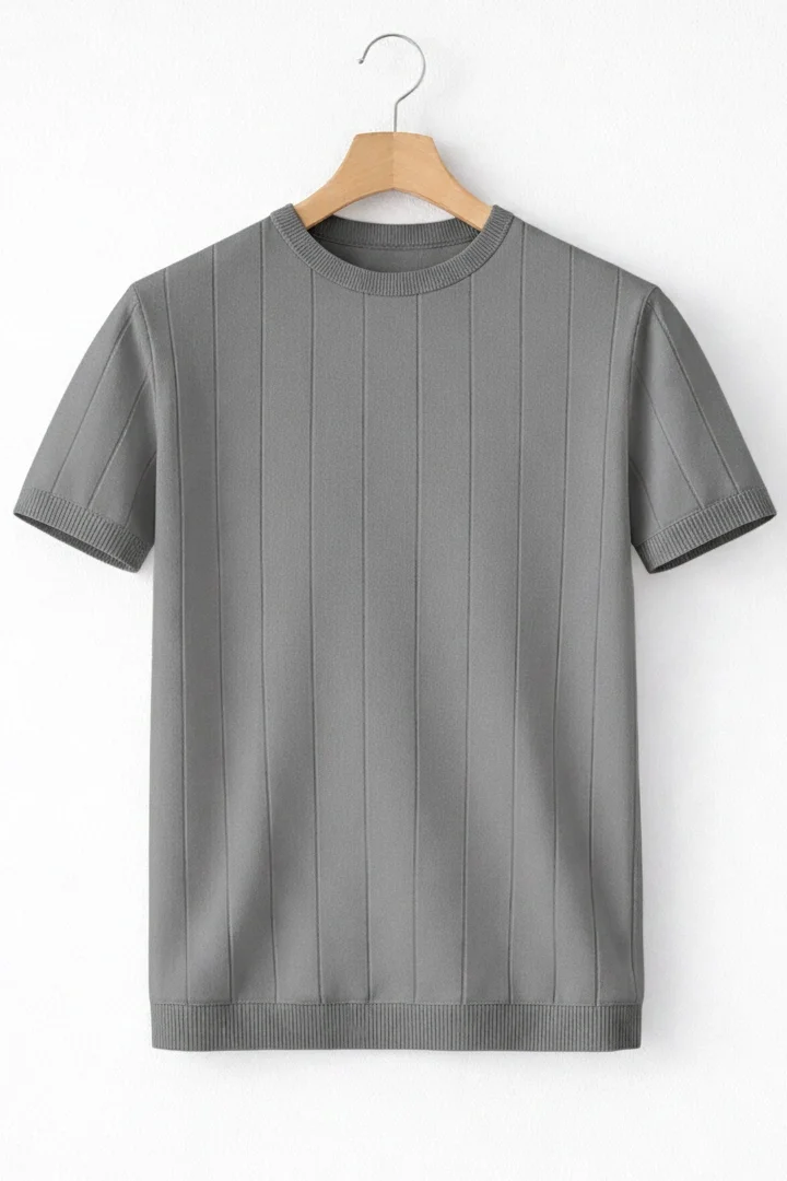 Erkek Açık Yaka Bloklu Triko Tişört Gri Cd174