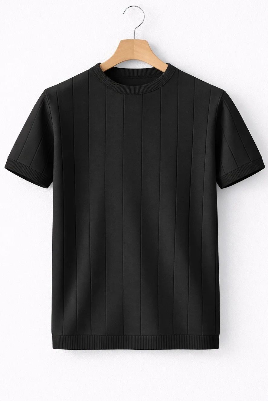 ERKEK BİSİKLET YAKA ÇİZGİLİ TRİKO TİŞÖRT SİYAH CD163