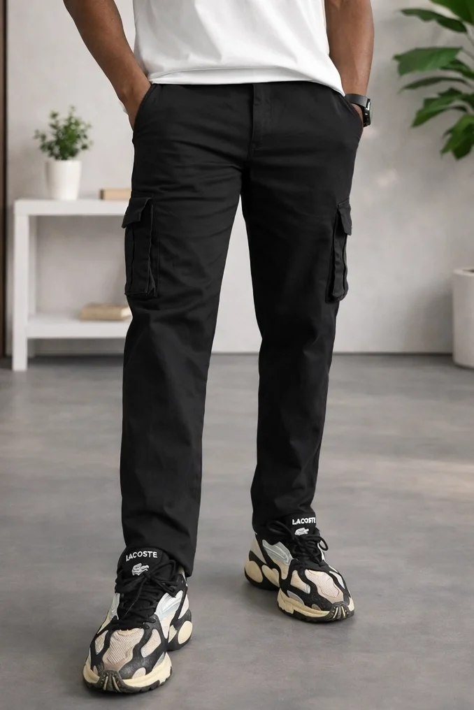 ERKEK CEPLİ DÜZ PAÇA KARGO PANTOLON SİYAH CD154