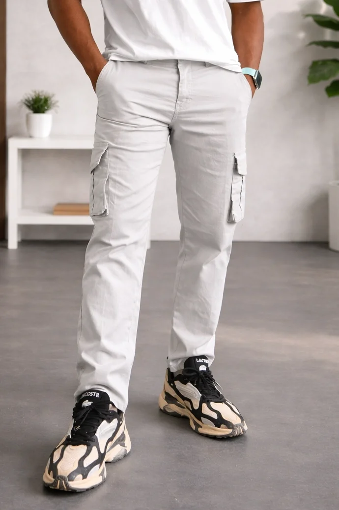 ERKEK CEPLİ DÜZ PAÇA KARGO PANTOLON TAŞ CD154