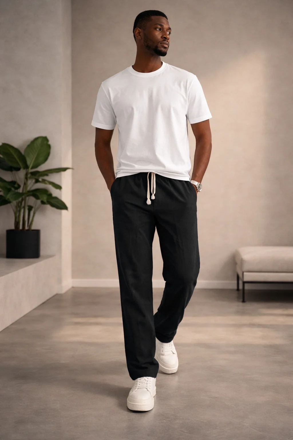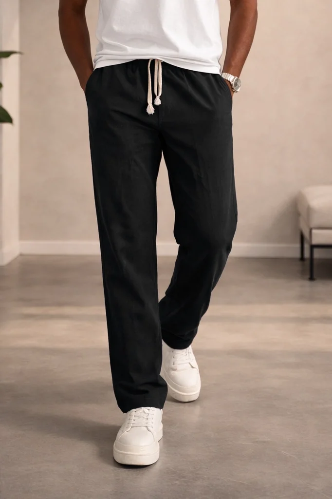 ERKEK KETEN GÖRÜNÜMLÜ PAMUK PANTOLON SİYAH CD159