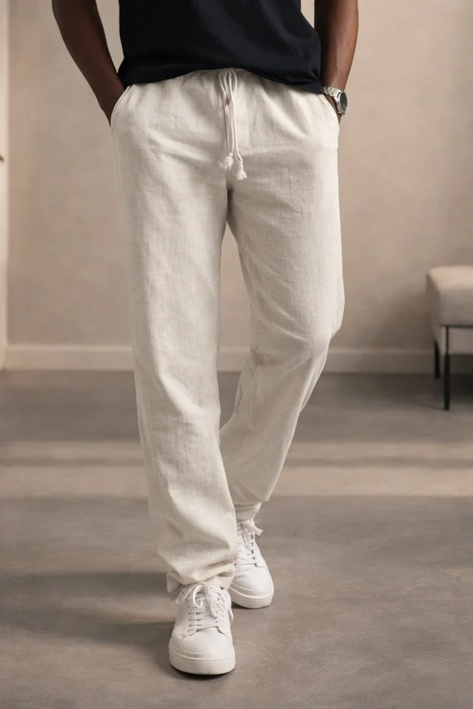 Erkek Keten Görünümlü Pamuk Pantolon Bej Cd159
