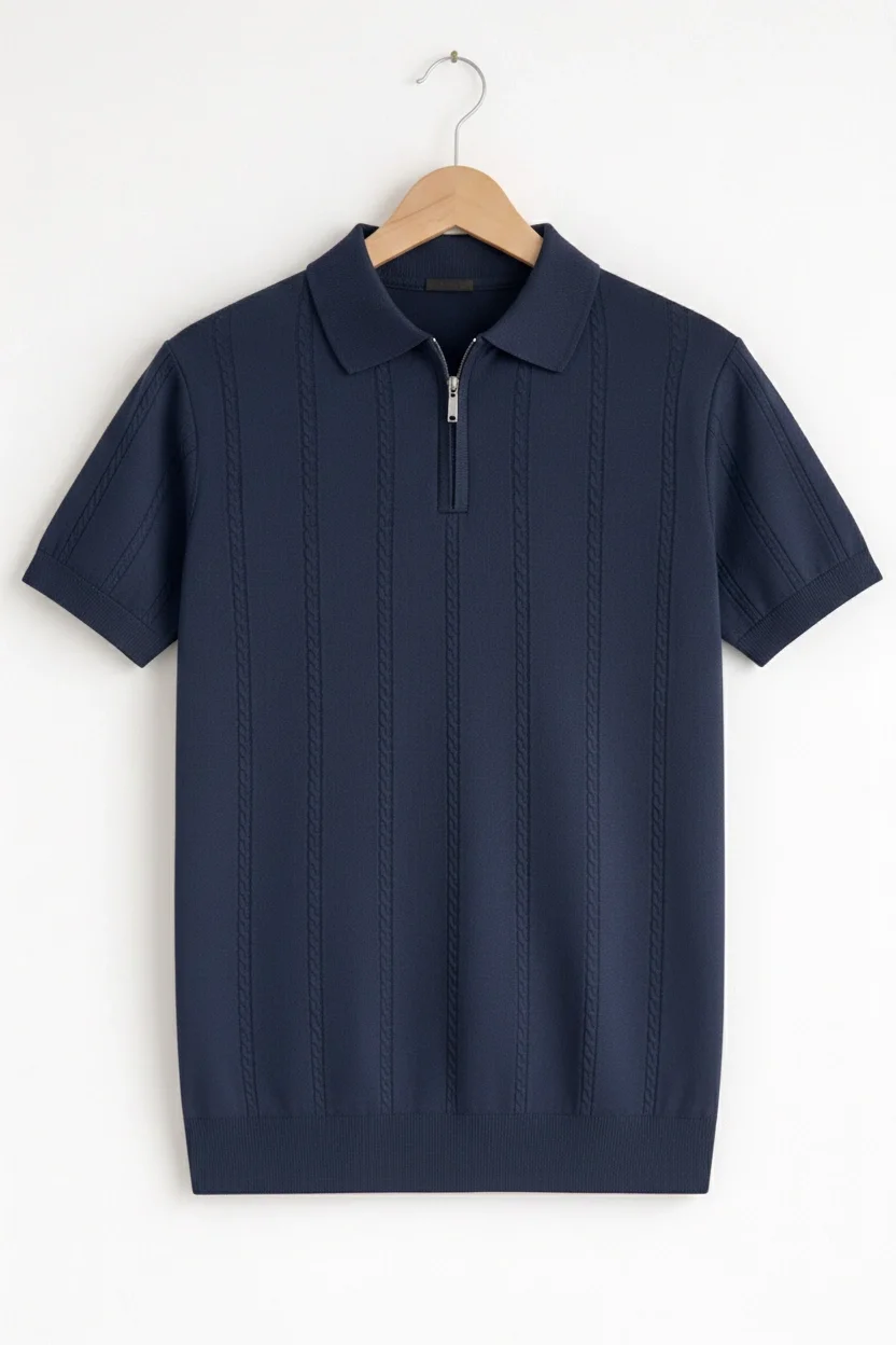 Erkek Polo Yaka Düğmeli Triko Tişört Lacivert Cd172